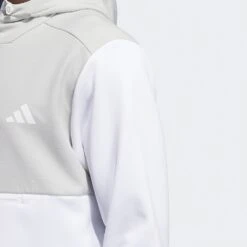 This brand new hooded mid layer style has been designed with the modern day golfer in mind. Its sporty and athletic silhouette features a woven panel on the upper chest panel, while a high contrast Performance logo is located on the chest for a signature adidas look. Tried & tested Cold.RDY technology is used within the double layered fabric to keep you warm and cosy, while the water repellent DWR finish provides a degree of protection in a light rain shower. The horizontal front zip pocket enhances the convenience factor, while a shortened quarter zip placket allows for ease of on & off. One of our favourite hybrid styles which could be worn as both a mid layer or an outer layer with ease.