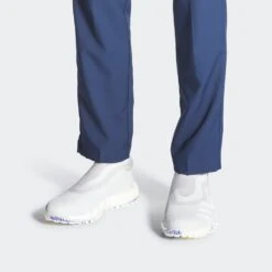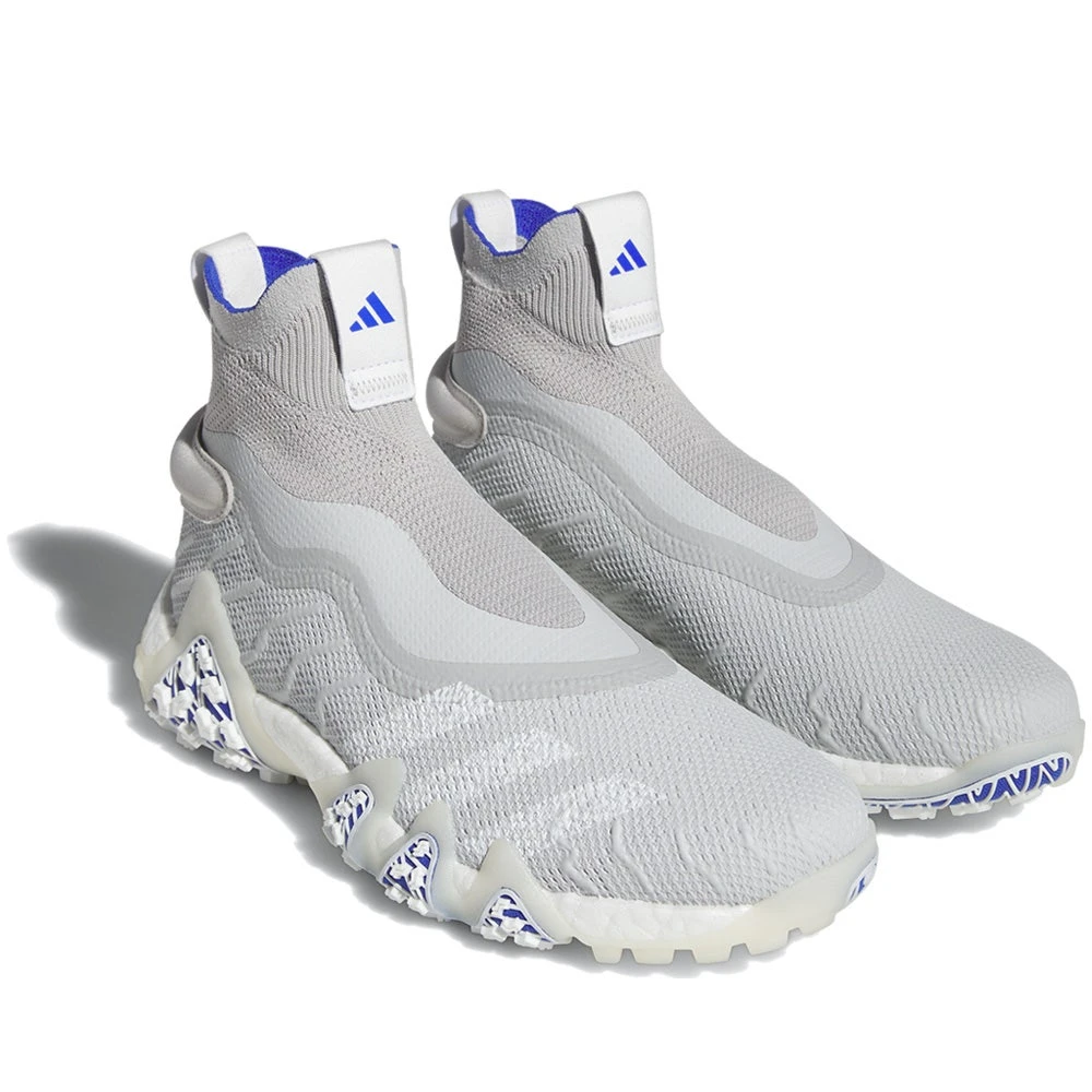 These newly refreshed adidas CODECHAOS golf shoes have landed and look as clean as ever – especially in this colour combination. The foot-hugging, sock-like fit of an adidas PRIMEKNIT upper adapts to the natural shape of your foot to support powerful drives, while the spikeless Twist Grip outsole holds firm as you pivot though your swing. Full length BOOST cushioning needs no introduction and will ensure that you get the same step-in comfort and responsive cushioning which is renowned the world over, while the Insite sockliner will also enhance the comfort factor once more. The synthetic upper boasts a multi layered construction which offers lightweight comfort and breathability along with reliable waterproof performance, while the introduction of a soft coating atop the main body of the shoe now provides additional stability and weather protection. The new outsole features spikeless “Chaos” traction with unparalleled grip thanks to the “TwistGrip” TPU inserts, while the soft feel of the durable rubber would also allow these golf shoes to be worn comfortably on hard surfaces away from the course. Laceless and bold, these adidas Codechaos golf shoes let you lead the way with groundbreaking style and full Codechaos performance.