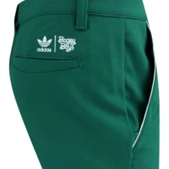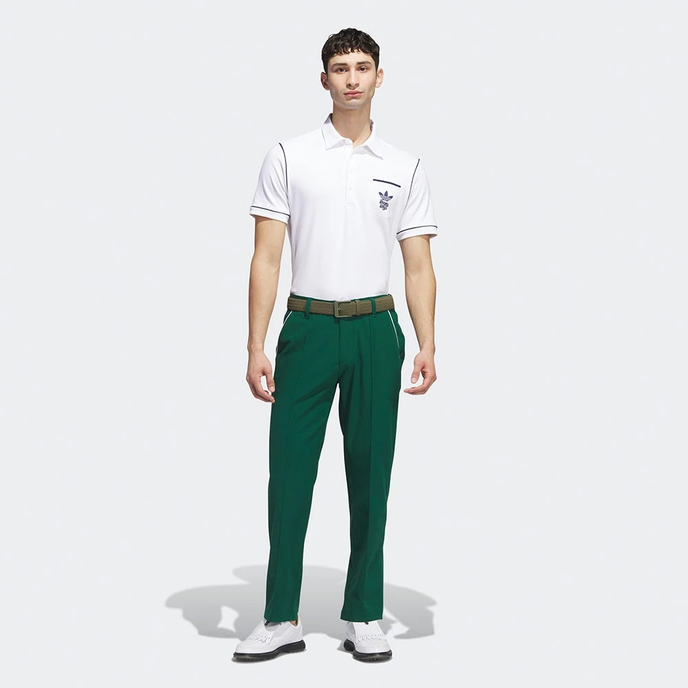 We love to see adidas collaborating with other upcoming golf fashion brands and this limited edition style has arrived from the highly anticipated adidas Originals x Bogey Boys capsule. Blending classic style with modern flair, these golf trousers make use of a moisture wicking performance fabric with added stretch for a full range of motion on the course, while full-length front seams add a crisp finishing touch. Collaborative branding featuring both the Trefoil & Bogey Boys logo is located on the hip – while the contrast pipe detailing is an extra fashionable touch. “Bogey Boys” is a golf clothing brand founded by rapper, singer, songwriter, global superstar & golf obsessive Macklemore – so you can be sure that these Originals x Bogey Boys golf trousers will keep you looking fly & feeling legit on the golf course this season.