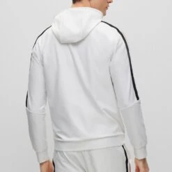BOSS Golf are experts when it comes to the mid layer category and we love this new full hooded sweater comes from the limited edition Matteo Berrettini capsule. Signature tri-colour stripe detailing is located on the upper sleeves, while the sporty look would be well suited to wearing both on and off the golf course this season. The fabric is soft, stretchy & technical – providing both comfort & performance through the moisture wicking capabilities. Look out for the matching Hicon MB 1 jogger pants to complete the co-ord look this season.