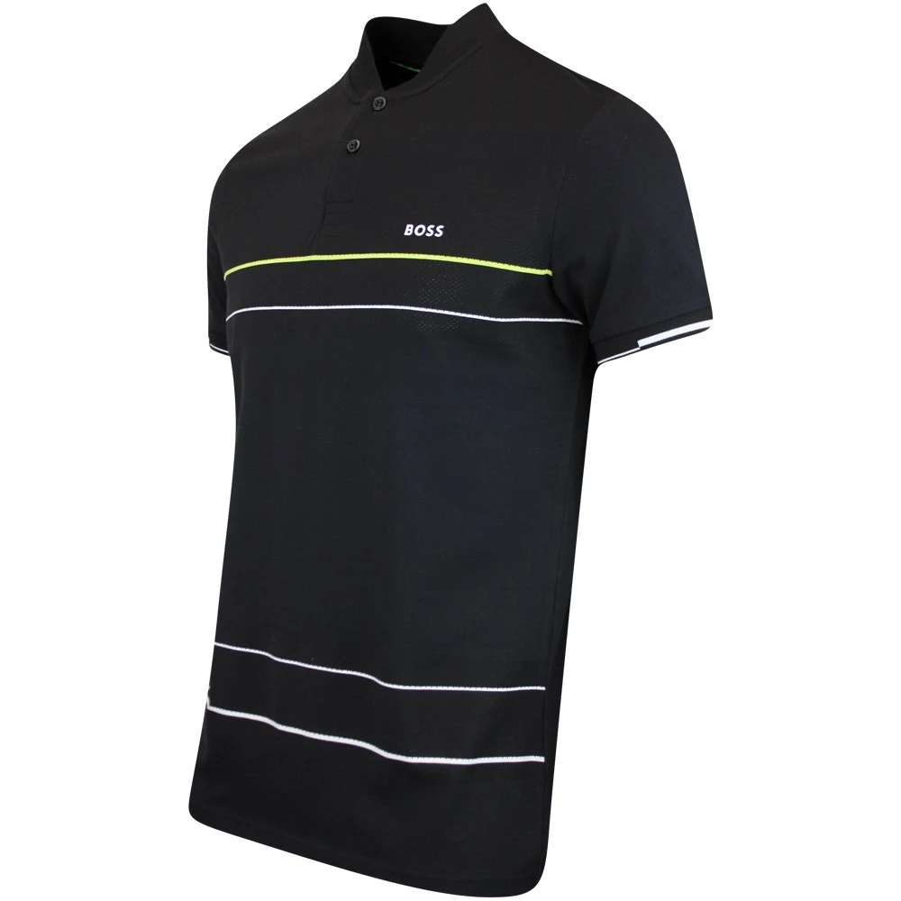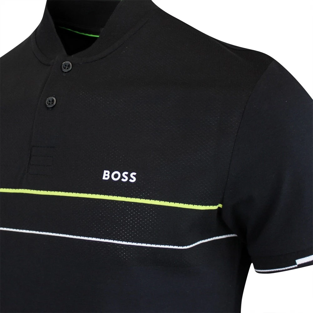 BOSS are experts when it comes to fashionable golf polo shirts and we love this new Pariq style which has arrived from the Spring 2023 collection. The design has been brought to life through the contrast stripe detailing at the chest & lower body, perfectly offsetting the refreshed BOSS logo on the left chest. The flat knit collar is designed to lay against the neck with minimal distraction, while the soft cotton jersey fabric has a super soft handle thanks to the interlock construction. Micro needle perforations enhance the moisture wicking performance to leave you feeling cool, dry and comfortable on the inside, while the two button placket further adds to the sporty style appeal. Another top choice from BOSS which is well worth adding into your on & off course looks this season.