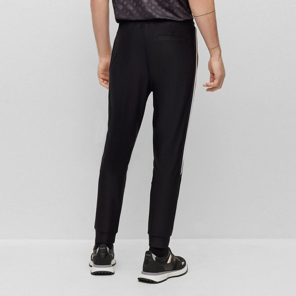 These brand new BOSS sweatpants come from the limited edition Matteo Berrettini capsule and look ultra sporty in this iconic colour combination. The contrast logo couples well with the tri-colour stripe detailing at the outside legs, while the sporty look is rounded off perfectly by the cuffed ankles. The fabric is soft, stretchy & technical – providing both comfort & performance through the moisture wicking capabilities. Look out for the matching Sicon MB 1 full zip hoodie to complete the co-ord look this season.