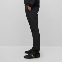 These BOSS golf trousers are one of the most advanced styles from the brand and feature many attributes to make them a wardrobe essential this season. That starts with the slim fit silhouette which is tapered through the leg – while the partially elasticated waistband improves comfort levels without compromising on the smarter overall look. The technical twill fabric has natural stretch, moisture wicking performance and an invisible DWR coating – three key attributes which are perfect for golf. Two side and two rear pockets provide ample storage, while the refreshed BOSS logo is positioned above the rear right pocket.