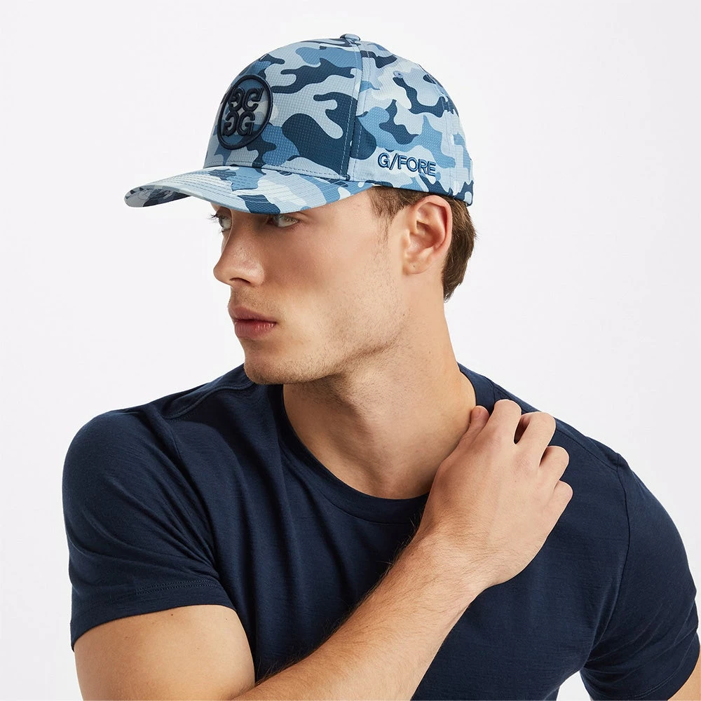 Bold logo snapback caps have become one of the biggest trends in golf wear and we love this new option from G/FORE. It features a rubberised 3D Circle G’s logo at the front, perfectly offsetting the blue camouflage base for a distinctively G4 look this season. The cap itself features a moisture wicking sweatband and breathable eyelets to ensure maximum comfort, while the five panel Flexfit 110 silhouette is a tried and tested style which is used throughout the G/FORE headwear line up. Improve your accessories game with this brand new G/FORE golf cap – sure to be a popular style throughout the season.