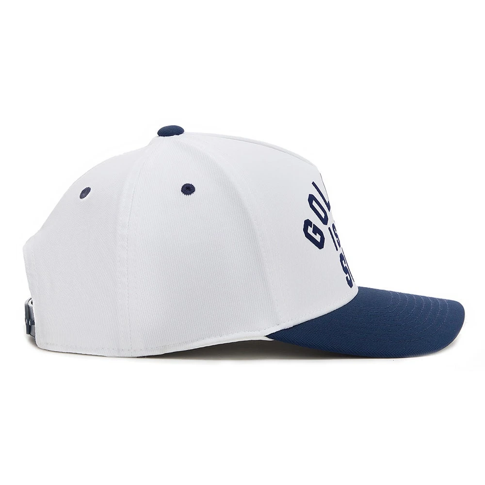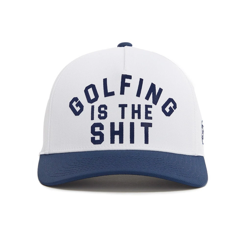 Bold slogan snapback caps have become one of the biggest trends in golf wear and we love this new option from G/FORE for 2023. The message on the front panel exclaims “GOLFING IS THE SH*T” in typically provocative G4 fashion – perfectly offsetting the lighter base colour. The cap itself features a moisture wicking sweatband and breathable eyelets to ensure maximum comfort, while the five panel Flexfit 110 silhouette is a tried and tested style which is used throughout the G/FORE headwear line up. Improve your accessories game with this brand new G/FORE golf cap – sure to be a popular style throughout the season.
