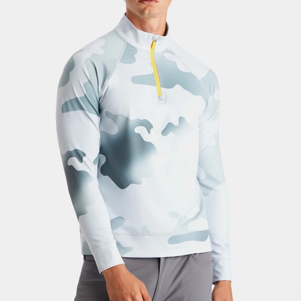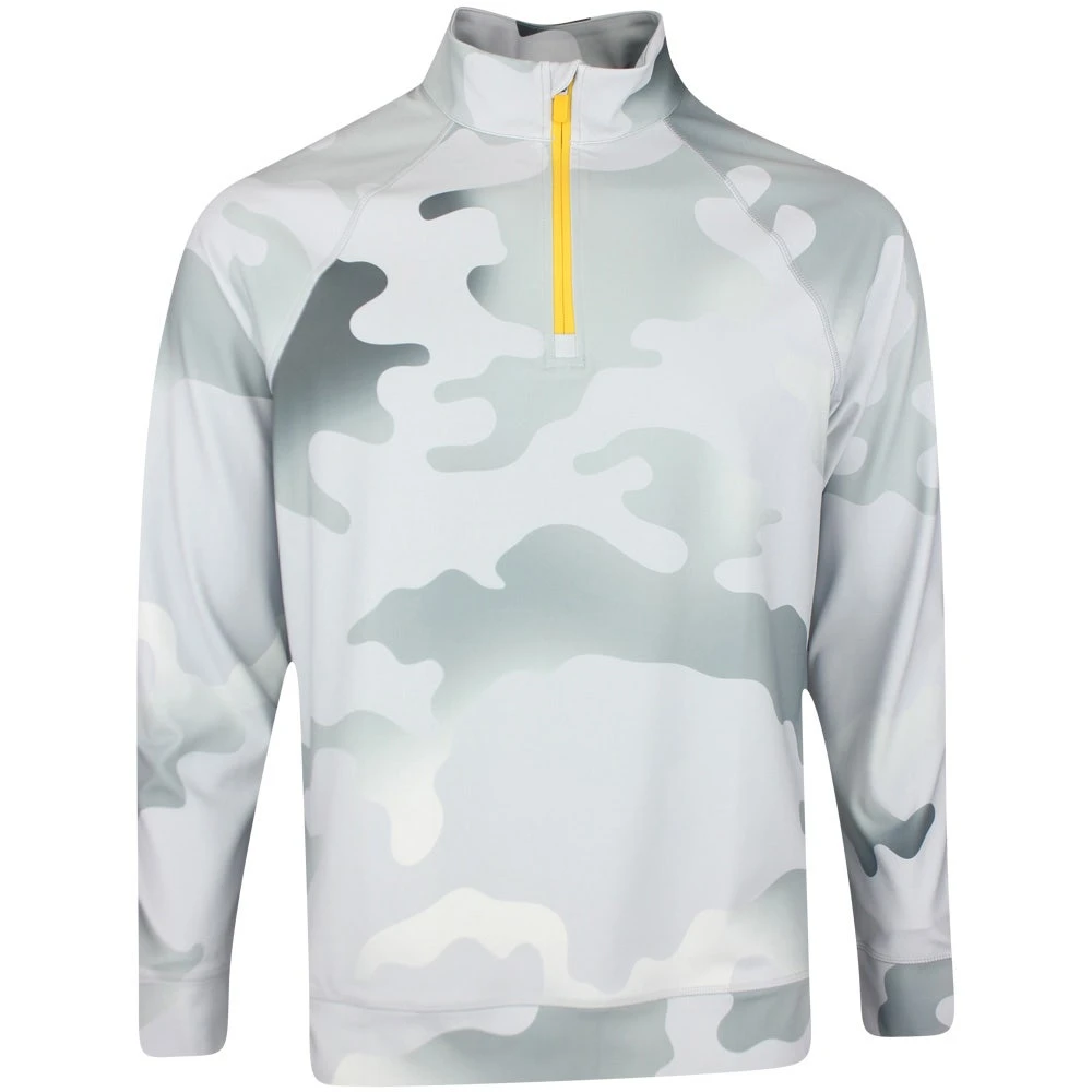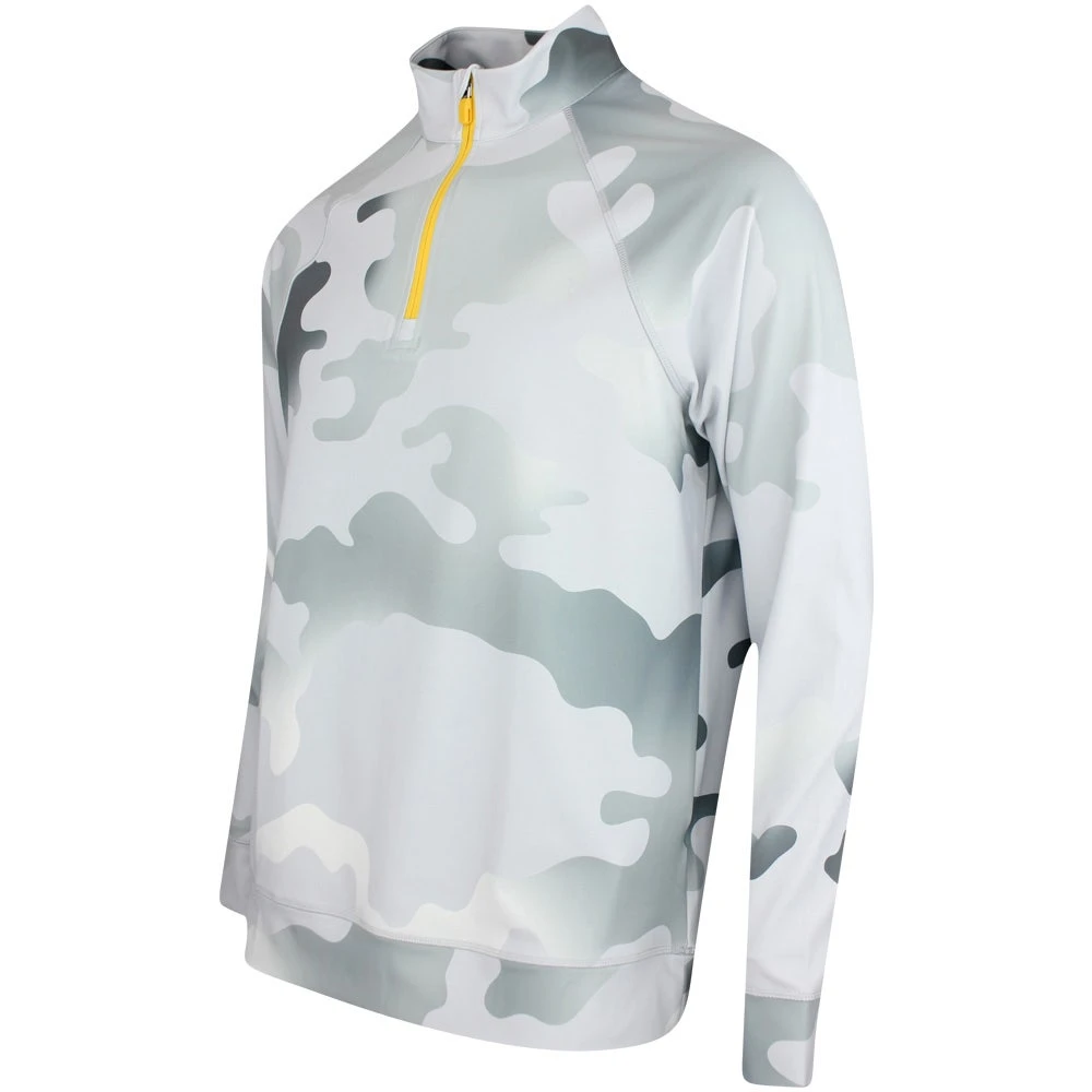 This G/FORE quarter zip pullover is one of our favourite styles thanks to the hint of cotton through the technical fabric – thus providing a soft, luxurious handle. A high level of stretch couples with the raglan sleeves for unrestricted, natural movement – while the lightly banded hemline and cuffs also help to provide an exceptional fit. Moisture wicking capabilities keep you feeling dry and comfortable on the inside, while the quarter zip placket offers plenty of coverage around the neck area. Another comfortable and stylish mid layer pullover from G/FORE which boasts an all over camouflage print which is right on trend at the moment.