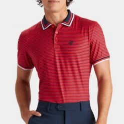 G/FORE are at the top of their game when it comes to polo shirts and this particular style offers more than first meets the eye. That’s because you’ll find a hidden “Skull & T’s” logo at the rear, integrated between the yarn dyed stripes for a truly distinctive look this season. The rib knit collar & cuffs are married together by a same trio of colours, complete with a three button placket for custom coverage. The soft jersey fabric features a high degree of stretch for maximum comfort in performance, while the moisture wicking nature of the fibres will leave you feeling cool and dry on the inside too. Another fashionable and eye catching style from one of the best golf brands around.