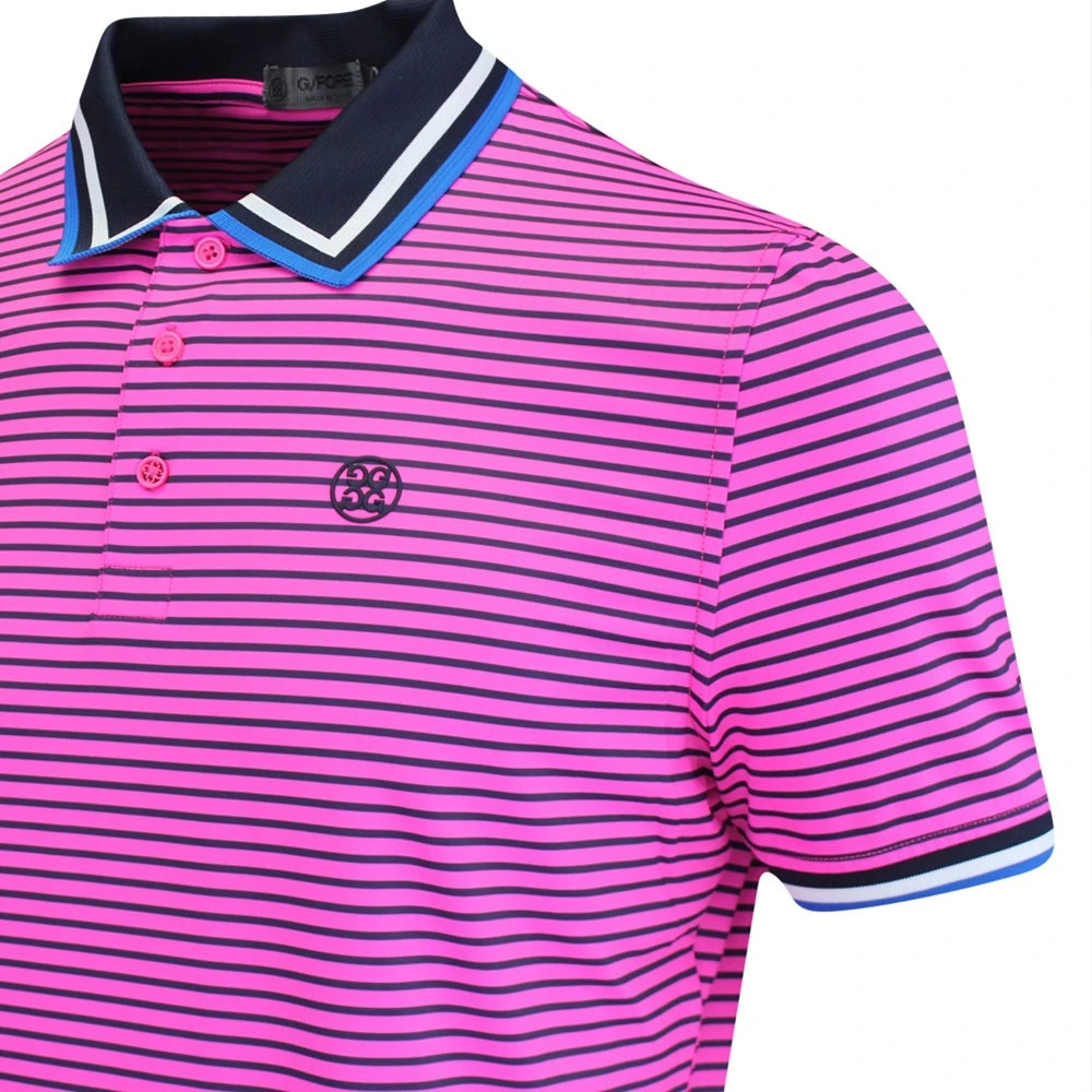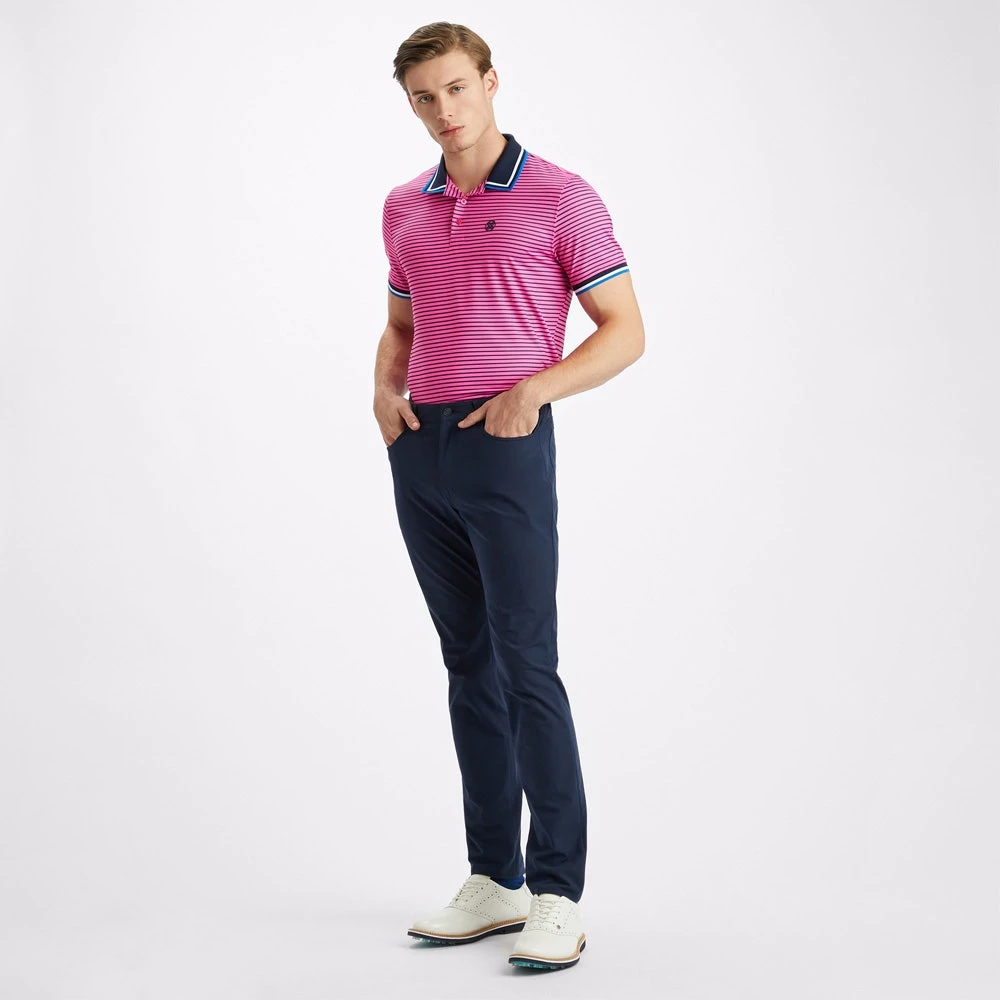 G/FORE are at the top of their game when it comes to polo shirts and this particular style offers more than first meets the eye. That’s because you’ll find a hidden “Skull & T’s” logo at the rear, integrated between the yarn dyed stripes for a truly distinctive look this season. The rib knit collar & cuffs are married together by a same trio of colours, complete with a three button placket for custom coverage. The soft jersey fabric features a high degree of stretch for maximum comfort in performance, while the moisture wicking nature of the fibres will leave you feeling cool and dry on the inside too. Another fashionable and eye catching style from one of the best golf brands around.