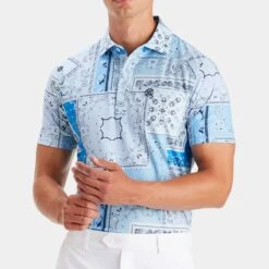 G/FORE are experts when it comes to statement polo shirts and we love the bold look on offer with this new option for Spring 2023. It features an all over print with a unique “bandana” pattern for a distinctive look which is especially fresh in this colour combination. The technical pique fabric features a high degree of added stretch for the ultimate comfort in performance, while the moisture wicking nature of the fabric leaves you feeling cool and dry on the inside too. One of our favourite styles to arrive from latest G4 collection.
