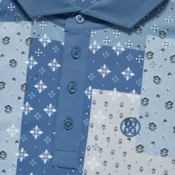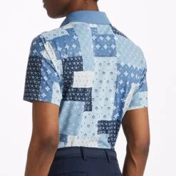 G/FORE golf polo shirts are up there with some of the best in the game and we love this new style which has arrived from the Fall ’23 collection. It features an all over print with a unique “Boro Print” bandana pattern which looks especially fresh in this colour combination. The technical pique fabric features a high degree of added stretch for the ultimate comfort in performance, while the moisture wicking nature of the fabric leaves you feeling cool and dry on the inside too. Ideal for wearing both on and off the course thanks to the materials used & fashionable aesthetic on offer.