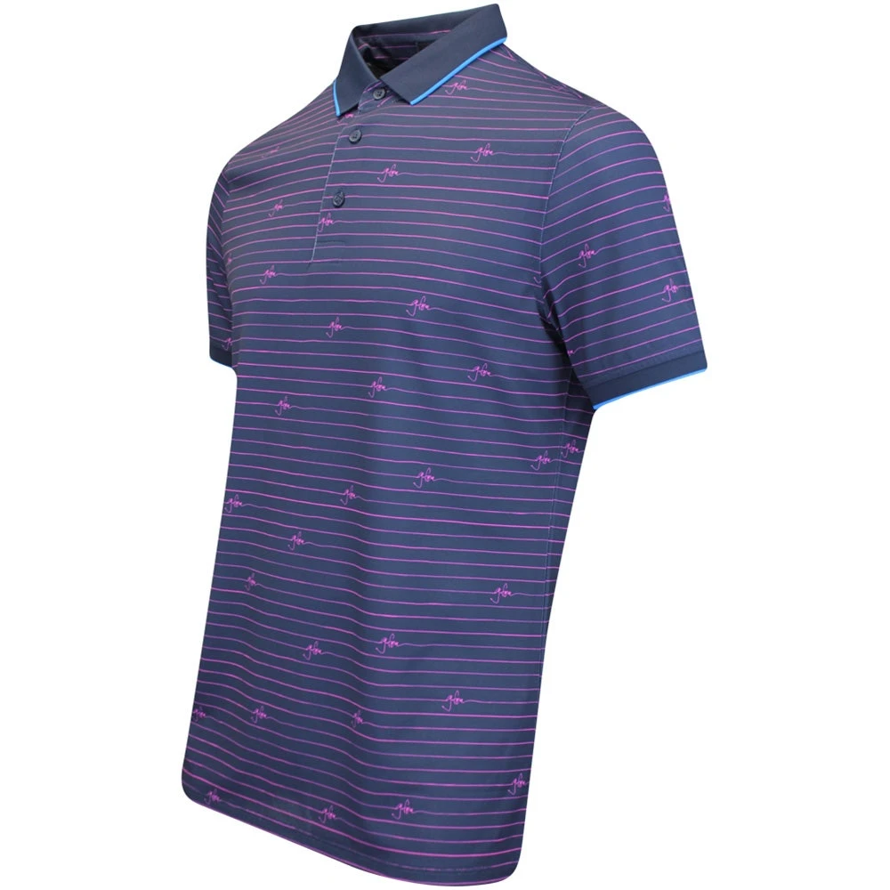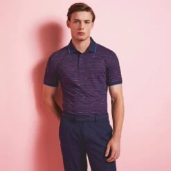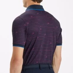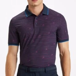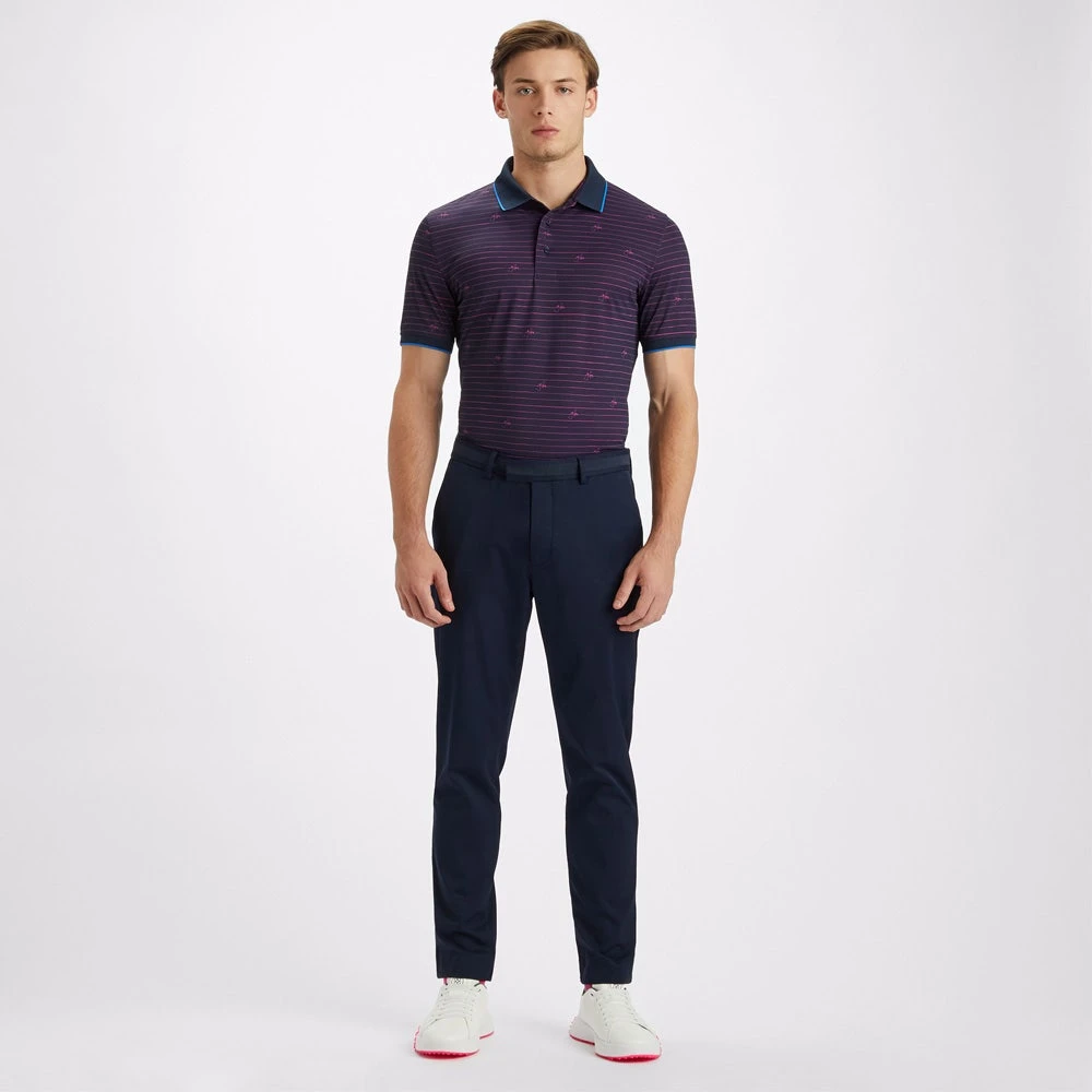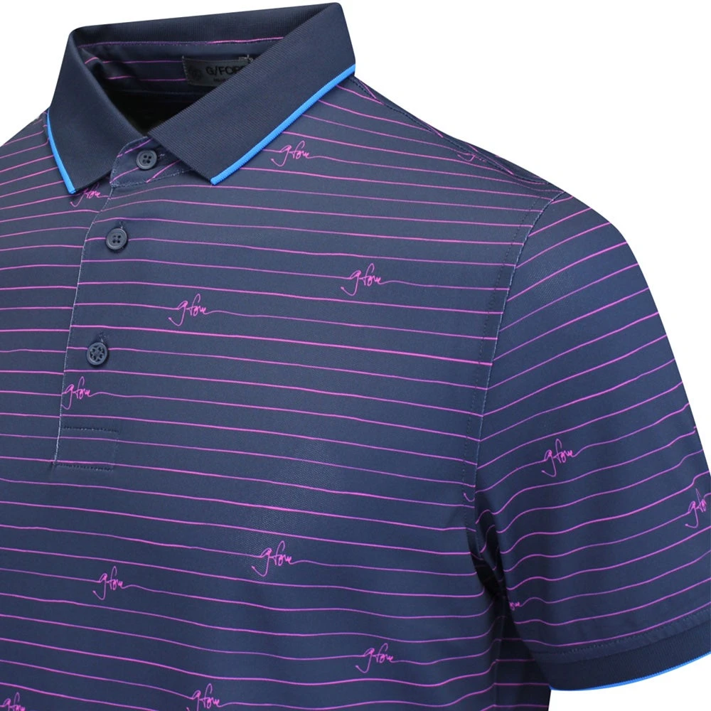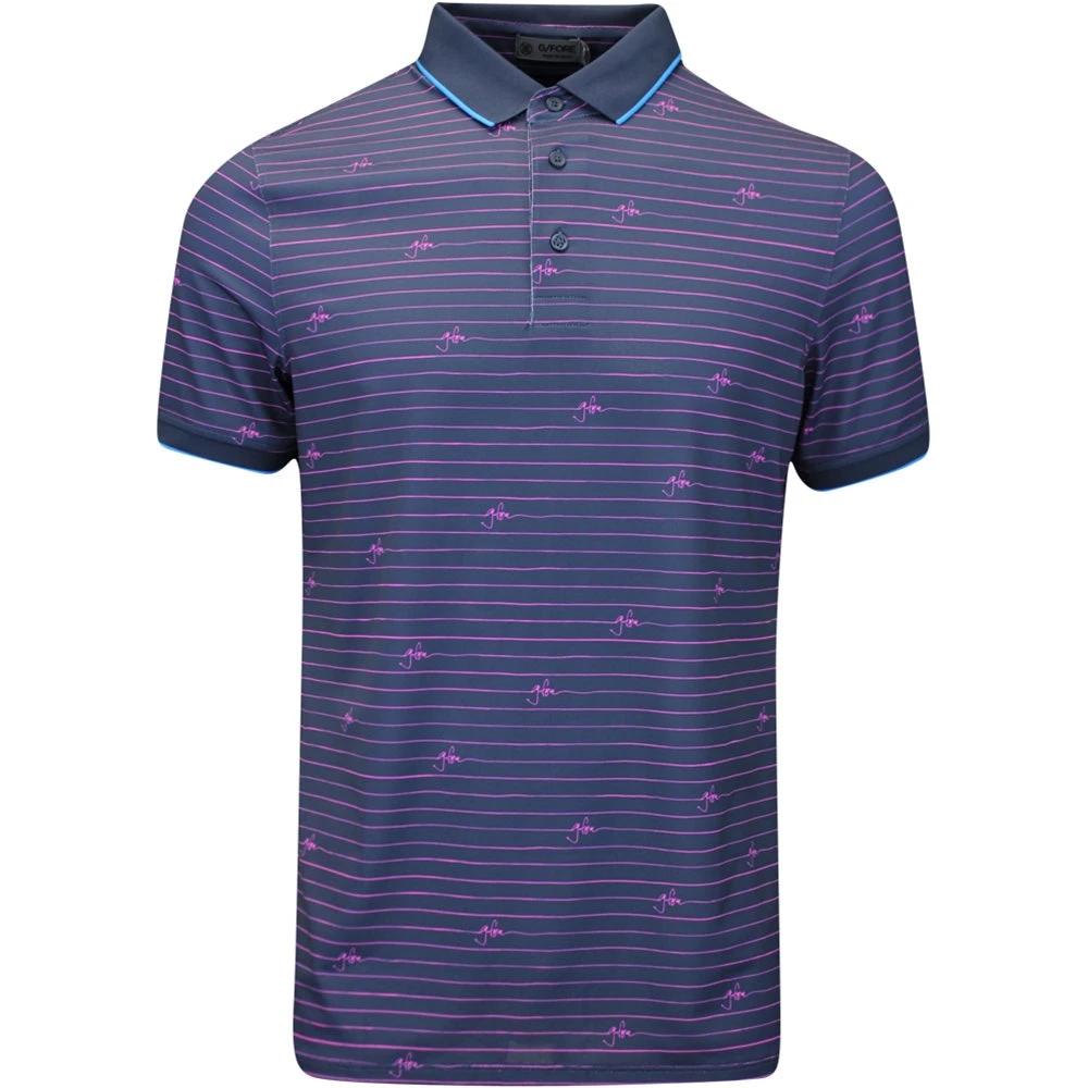 G/FORE golf polo shirts are up there with some of the best in the game and we love this new style which has arrived from the Fall ’23 collection. It features an all over fine-stripe pattern which is broken up by irregular “gfore” script logos throughout – a unique design which looks super smart in this colour combination. The technical pique fabric features a high degree of added stretch for the ultimate comfort in performance, while the moisture wicking nature of the fabric leaves you feeling cool and dry on the inside too. Ideal for wearing both on and off the course thanks to the materials used & fashionable aesthetic on offer.