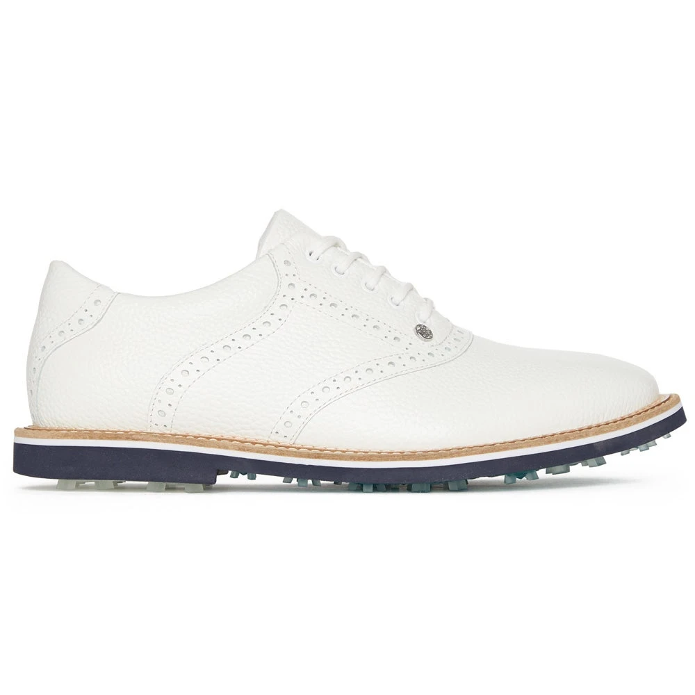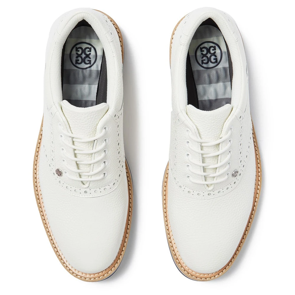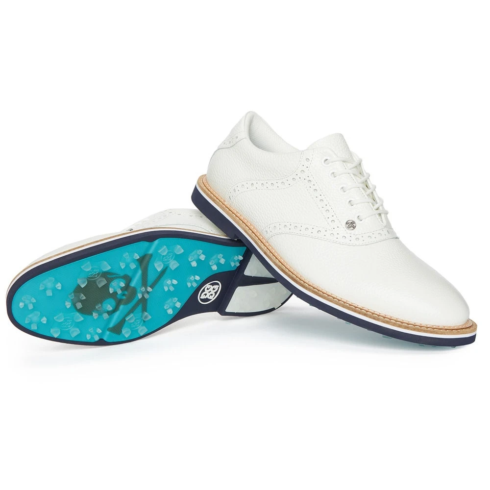 G/FORE golf shoes are among some of the most stylish and practical in the game with a clean and classic look which will match with almost any golf outfit this season. The full grain leather is soft and supple with waterproof protection for peace of mind, while the computer engineered “G/ROUND Control” cleat design offers optimal traction in all conditions. Comfort is enhanced with the Ortholite sock liner and the moulded EVA midsole, while a cotton mesh lining helps to improve breathability in warmer conditions. This G/FORE Gallivanter style features an debossed pattern on the upper with tonal Skull & T’s logos throughout – a unique footwear option which is sure to provide timeless style, extreme comfort and high performance this season.