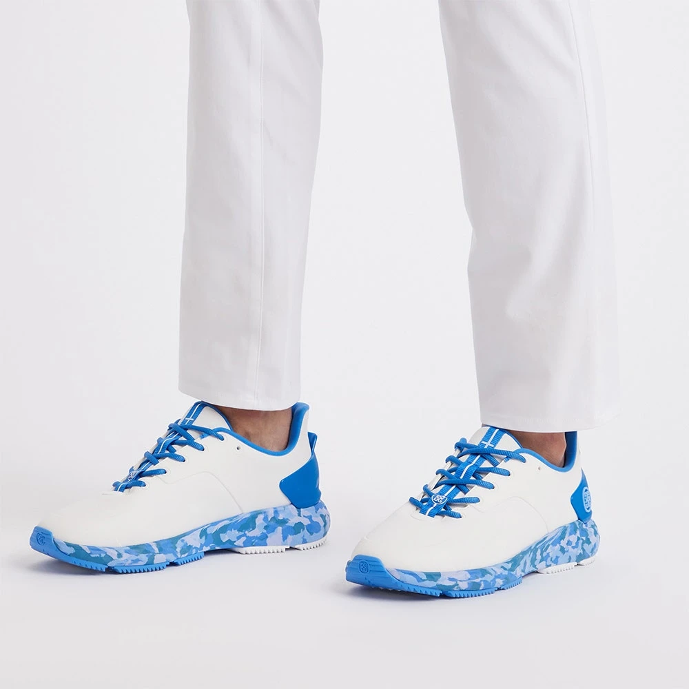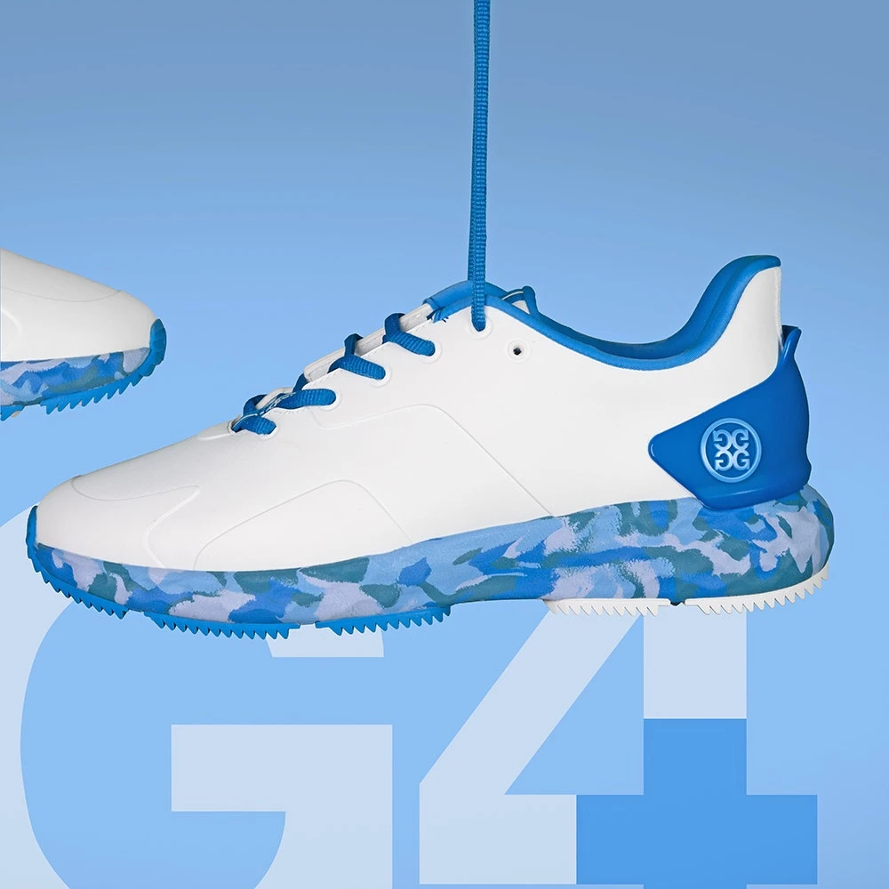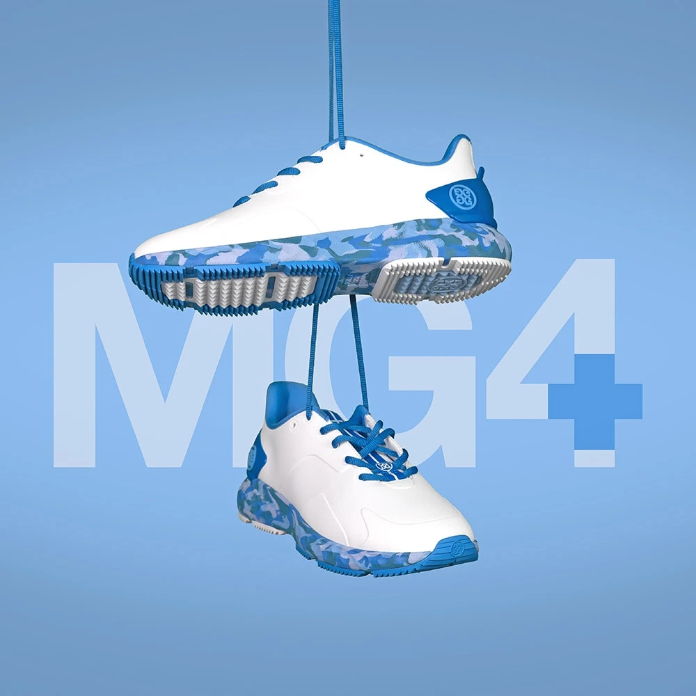 G/FORE have updated their popular MG4+ shoe silhouette with even more style appeal – here finished with a camouflage effect through the midsole to elevate the modern and sporty aesthetic to new heights. A premium waterproof upper provides improved comfort, stability & protection, while the 3D heel counter provides additional lateral support. Comfort levels are assured through the auxetic lattice midsole with “FOREFOAM” cushioning, while the triple density footbed is another clever and unique feature which is “the ultimate massage for your soles”. The flexible, rubberised outsole features a hybrid traction pattern for top level performance on the golf course while also proving soft enough to wear on harder surfaces away from the course.