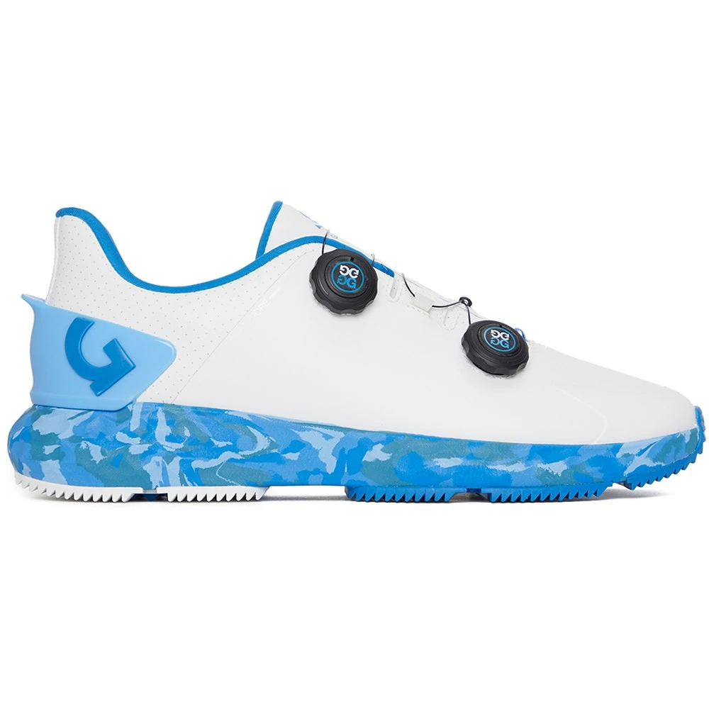 This brand new spikeless shoe from G/FORE marries a progressive look with a premium waterproof upper and patented twist dial lacing for even more convenience and a customised fit. This year’s design updates include the perforated leather material which is used at the rear & tongue, while the bright blue camouflage print through the midsole is an ultra fresh and distinctive G4 look. Two dials at the outstep allow you to conveniently lock in your custom fit, while the contrast heel counter provides additional lateral support through the golf swing. Comfort levels are assured through the auxetic lattice midsole with “FOREFOAM” cushioning, marrying perfectly with the triple density footbed which is “the ultimate massage for your soles”. Finally, the flexible rubber outsole features a hybrid traction pattern for top level performance on the golf course while also proving soft enough to wear on harder surfaces away from the course. Another clean and stylish spikeless silhouette from one of the best footwear brands in the game.