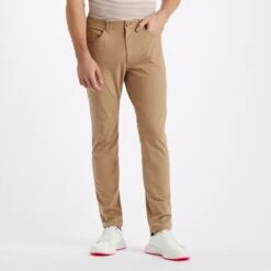 We love to wear G/FORE golf trousers on the course thanks to the super lightweight, soft and stretchy nature of the technical twill fabrication. The technical, moisture wicking properties of the fabric allows for comfort on the inside regardless of the conditions, while the versatile five pocket aesthetic would look great both on and off the golf course. A modern slim fit silhouette is tapered through the leg, while typical G/FORE branding can be found in discrete locations.
