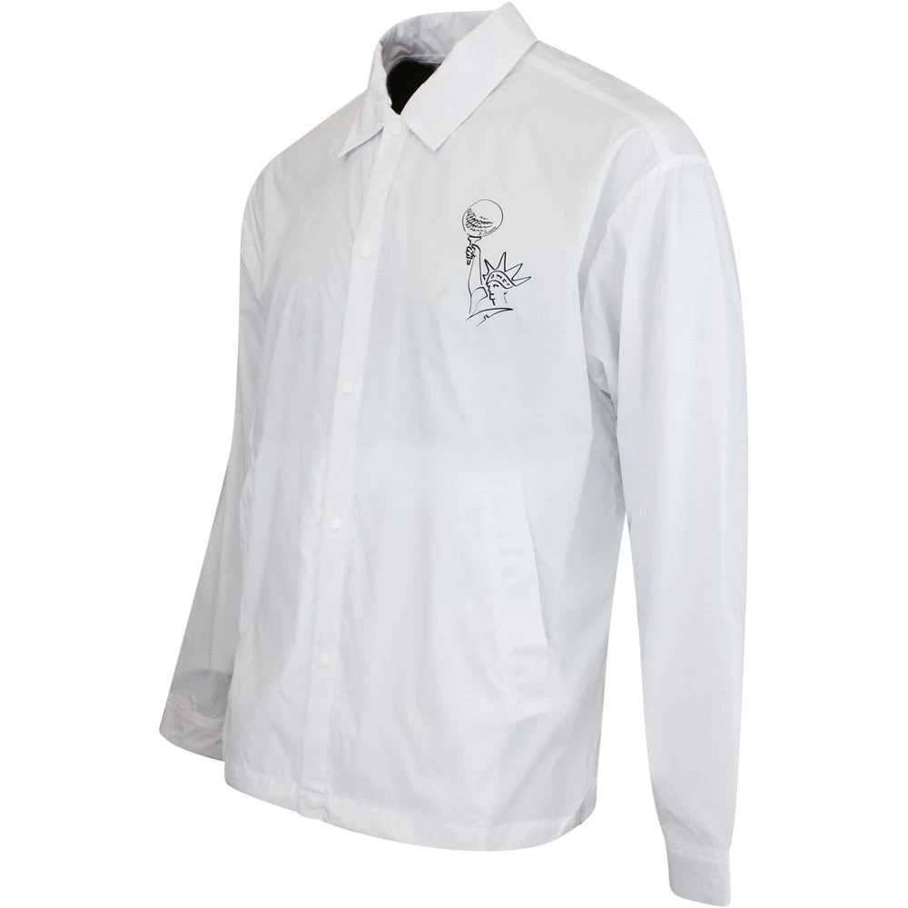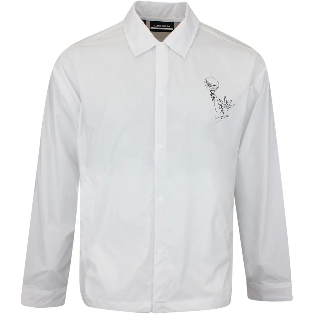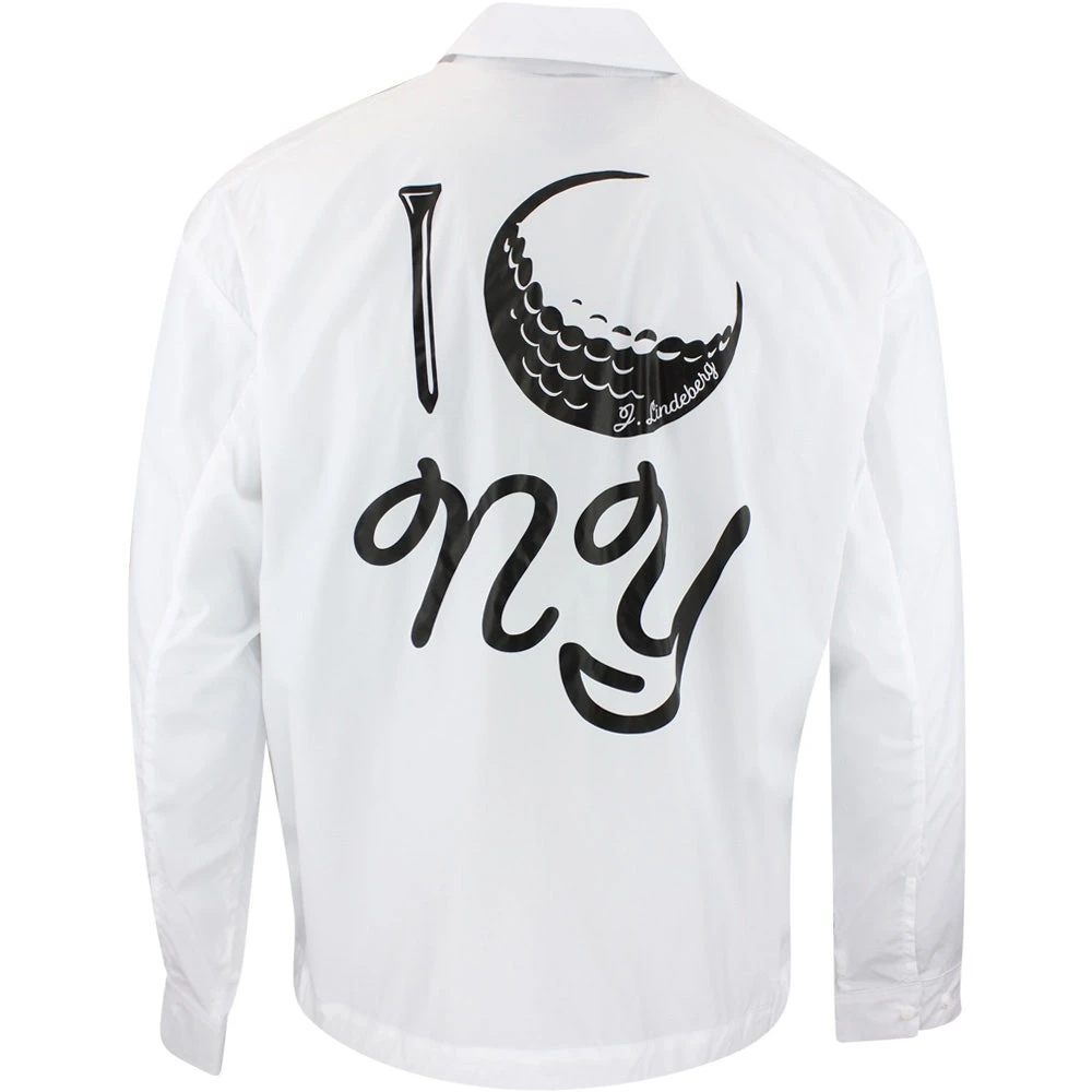 J.Lindeberg have introduced this limited edition button up jacket as part of their wider “tour collection” for 2023 – inspired by the US PGA Championship which will take place at Oak Hill C.C in Rochester, NY. It takes on a classic “coach jacket” silhouette and features the I Heart NY logo at the rear (with a golf ball in place of the heart icon) – a unique design which looks fresh in this monochrome colour combination. You’ll also find the Statue of Liberty printed at the left chest – this time holding a golf ball instead of her famous torch. A unique, statement J.Lindeberg jacket which will look at home both on and off the golf course.