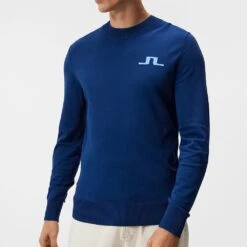 J.Lindeberg is a brand which excels when it comes to knitwear and this crew neck sweater has the look of a classic knit jumper – yet made with a technical performance fabric. That means that you can enjoy all the benefits of a performance JL mid layer such as moisture wicking breathability, warmth and flexibility – all with the look of a traditional sweater made from natural materials. The crew neck silhouette will transfer into your off course looks with ease, completed by the presence of JL Bridge logos at the chest and neck. Set to become a wardrobe staple for the most fashionable golfers around.