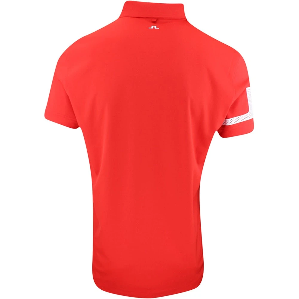 The new J.Lindeberg collection is here and this Heath Regular Fit polo shirt is an iconic style which is an easy way to get involved with JL this season. It features timeless styling with the iconic Bridge logo woven into the collar, while an enlarged Tour sized JL Bridge is also located on the right sleeve – now with laser cut perforations for even more visual appeal. The premium TX Jersey fabric has a soft handle and features moisture wicking performance for comfort on the inside, while the high degree of stretch leaves you feeling free to move through the golf swing. A wardrobe staple from J.Lindeberg which looks ultra fresh in this seasonal colour option.