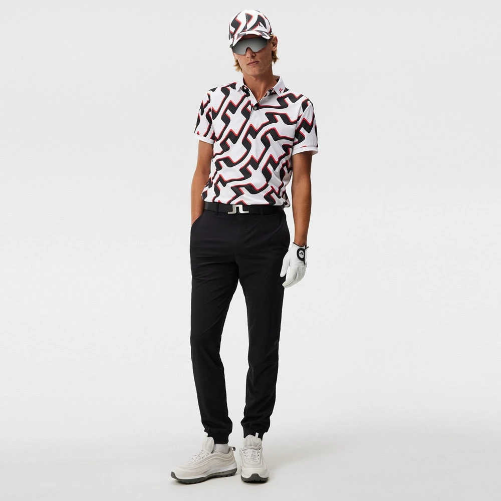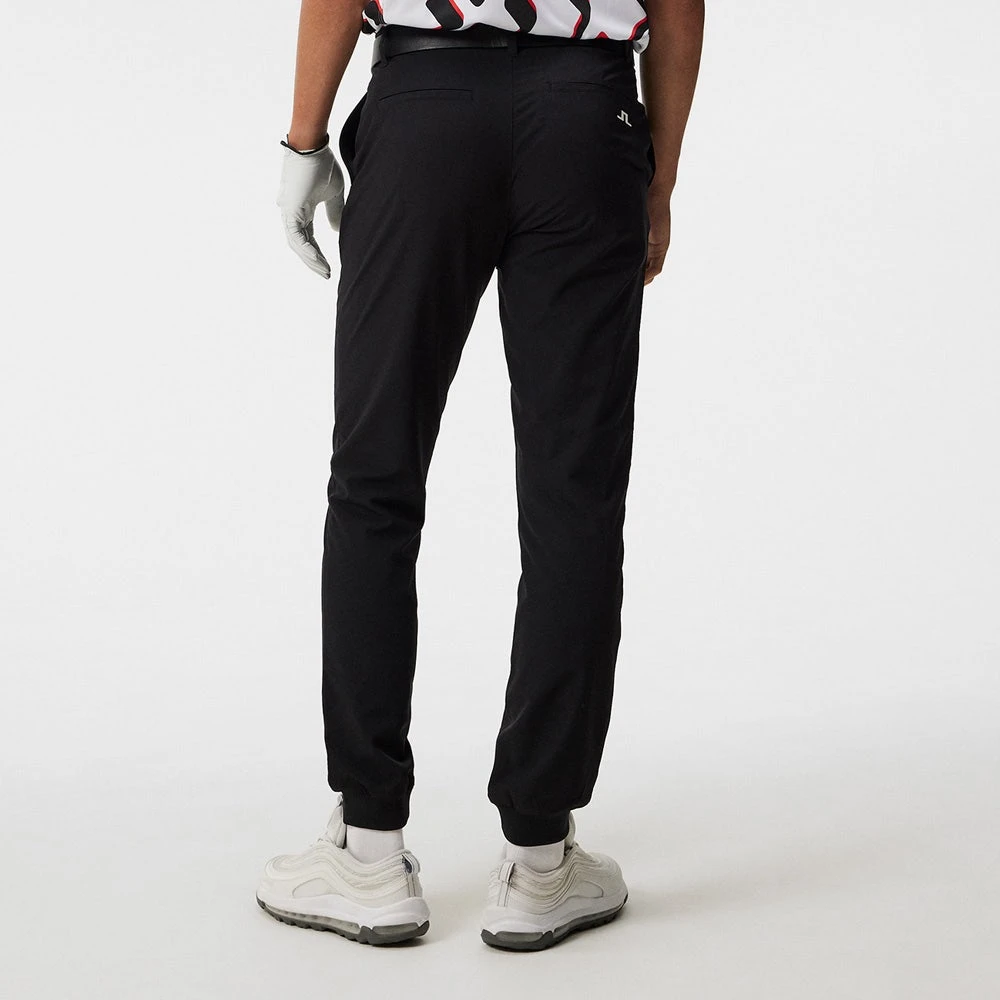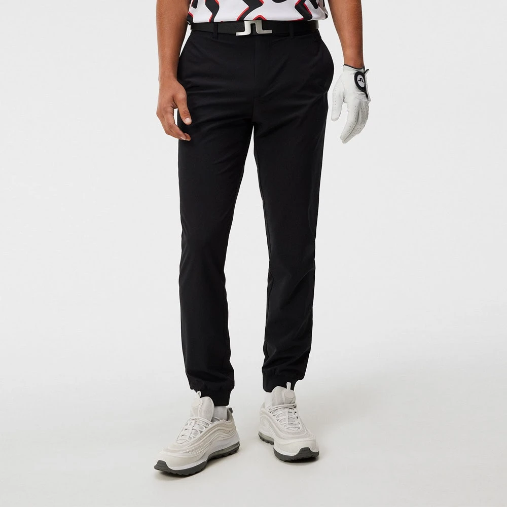 Introducing one of the best golf trousers in the game today – the J.Lindeberg Performance Cuffed Jogger Pant. Brand new for 2023, these smart golf joggers embrace one of the hottest trends in golf wear and boast immaculate attention to detail throughout. First of all, the newly updated stretchy rib knit cuffs sit comfortably around the ankle for that signature jogger look – while the inclusion of leg length options minimises any unsightly bunching of excess fabric. The buttoned fastening, zip fly & belt loops retain a smarter overall look – while the iconic JL Bridge is also located above one of the rear pockets. The Micro High Stretch fabric offers four way stretch for flexible comfort where you need it most, while the DWR coating also means that rain droplets will bead off and dry quickly. Breathable, comfortable and fashionable – probably the best value jogger pant in the game right now.