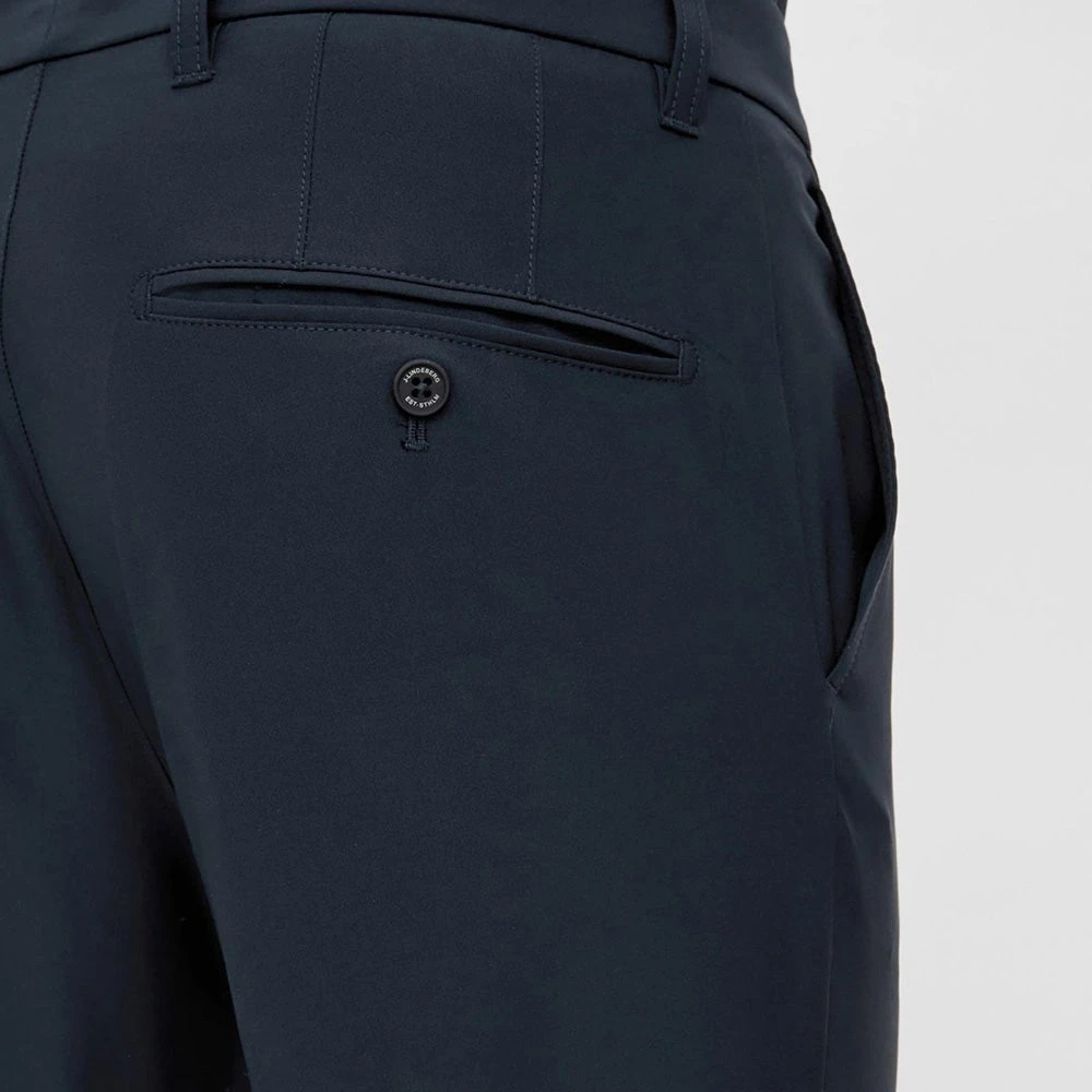 J.Lindeberg golf trousers are up there with the best in the game and we love the newly updated Ellott slim fit golf pant – now featuring a Micro High Stretch fabrication. Functional properties of this fabric include its high degree of stretch for flexibility, its breathability for comfort on the inside and its lightweight feel. The invisible DWR coating means that rain will bead off the fabric and dry quickly, while the V notch at the rear further enhances comfort levels. The slim fit silhouette on the Ellott pant is a classic when it comes to J.Lindeberg, while the buttoned rear pockets further elevates the smart look. An essential pick up to style with your favourite JL outfits this season.