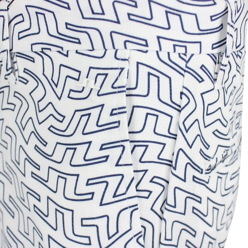 Bring your outfit to life with this stylish J.Lindeberg golf pant which introduces a seasonal monogram print into a tried and tested JL pant silhouette. The style is based on the “Vent” pant which makes use of a technical fabric with a subtle mesh finish for improved moisture wicking comfort and breathability, while the high degree of stretch also allows for flexibility where you need it most. A V Notch at the rear improves comfort at the waistline, while the buttoned rear pockets further elevates the smart look. A bold choice which will help you push the boundaries in true JL fashion this season.