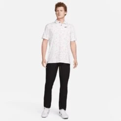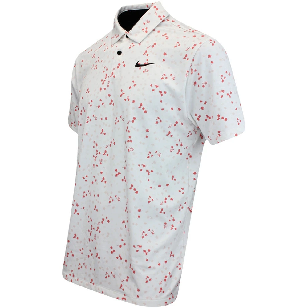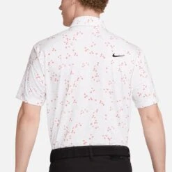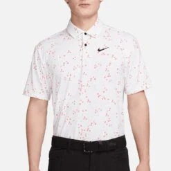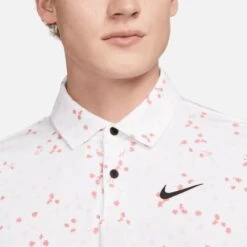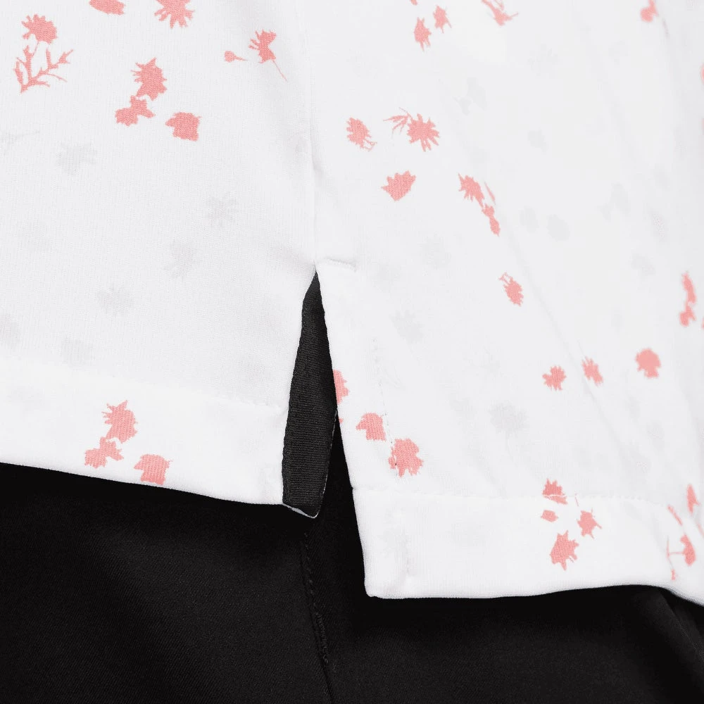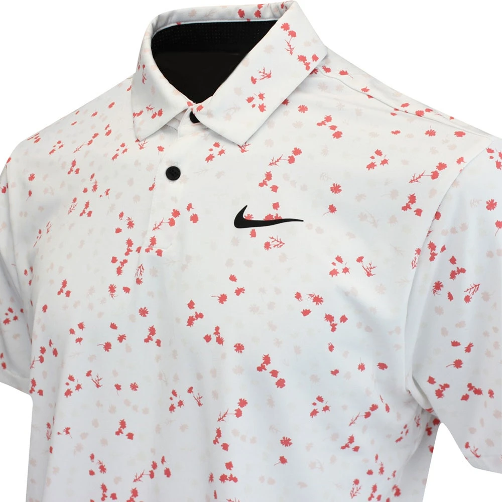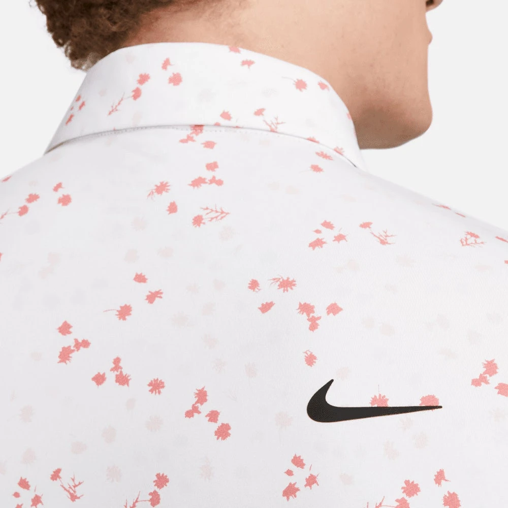This year, Nike Golf are giving you the chance to wear the exact same styles as their top TOUR ambassadors – now including the same high contrast branding that you’ll see on your TV screens. This means that you can now find the signature Swoosh logo at both the left chest and right shoulder blade, the latter being a new logo placement which has rarely been seen on screen before. This particular polo shirt boasts moisture wicking Dri-Fit technology to keep you cool, dry and comfortable on the inside – while the regular fit silhouette is comfortable in all the right areas. The high level of stretch allows for maximum freedom of movement, while the hem vents allow this style to be worn untucked without compromising on the overall styling. A must have for any Nike Golf fan this season – especially in this all over micro floral print option.
