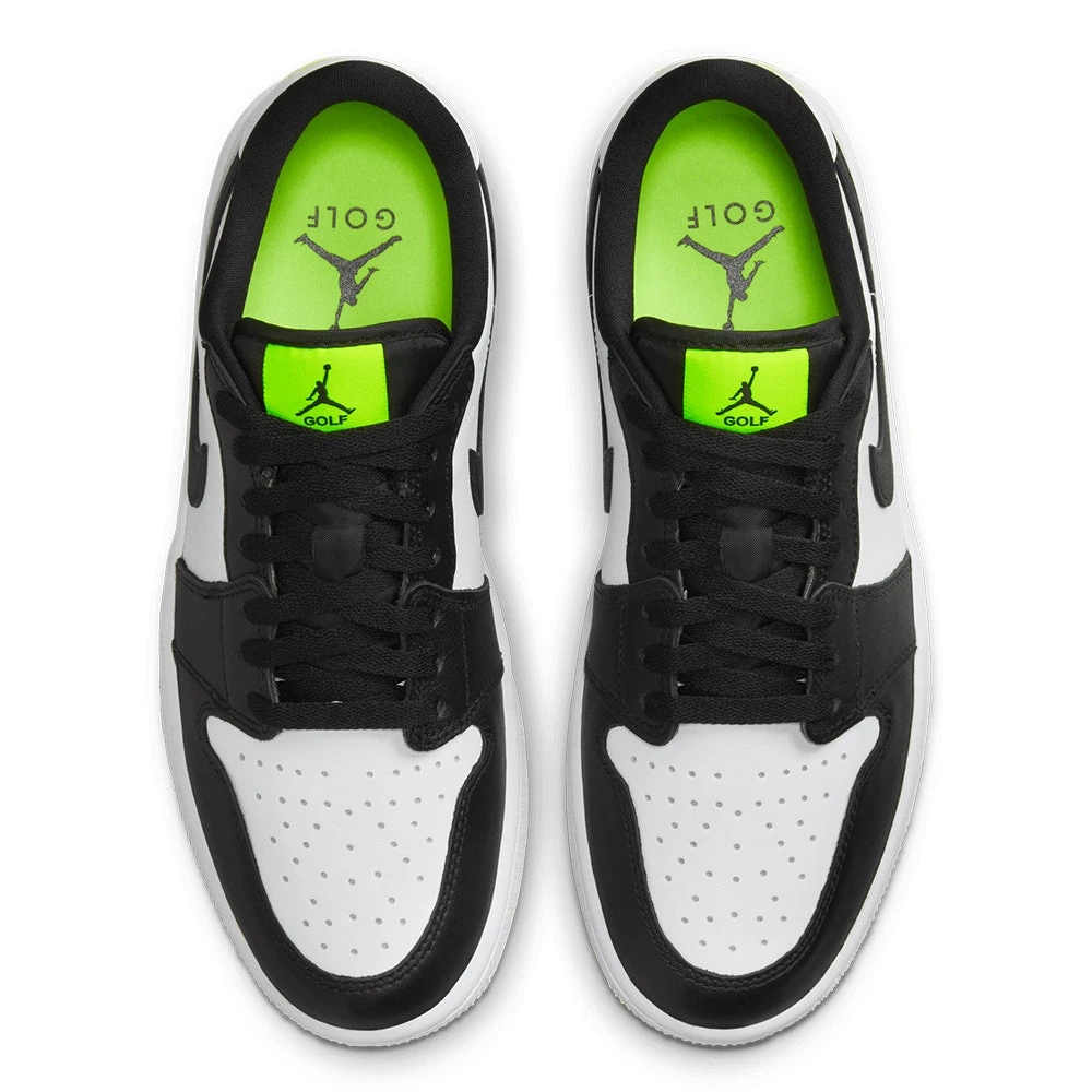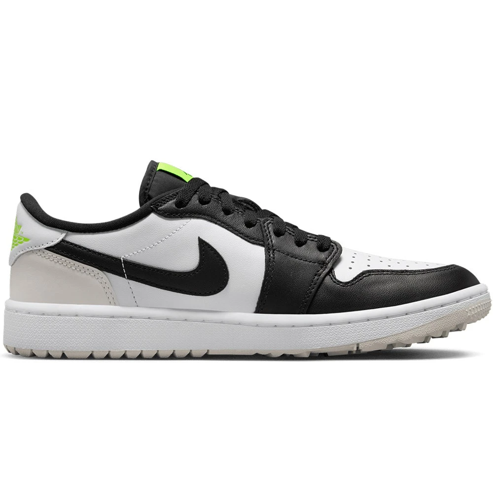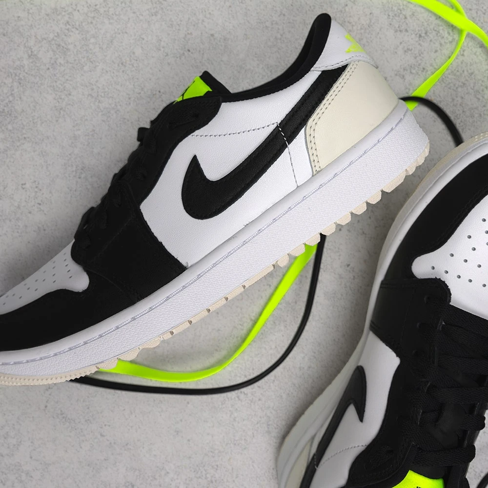 We can finally reveal the Nike Air Jordan 1 golf shoes – a brand new style which is based on one of the true icons of the sneaker world. This golf specific transformation features a “stitch for stitch” reconstruction of the AJ1 upper – meaning that the look, fit & feel remains very much true to the original. That means it also retains some of the legendary design details which make it so identifiable, such as the genuine leather upper, colour blocked aesthetic & Nike Air Jordan branding. Golf specific updates come in the form of a one year waterproof warranty & encapsulated Air at the heels – but the outsole is where you really notice the “G” treatment. For the first time ever, Nike Golf have utilised a spikeless outsole with an integrated traction pattern – perfectly balanced for wearing both on and off the golf course. That’s just one of the many factors which makes the Nike Air Jordan 1 golf shoes the must-have shoe style of the year – especially in this colour combination.