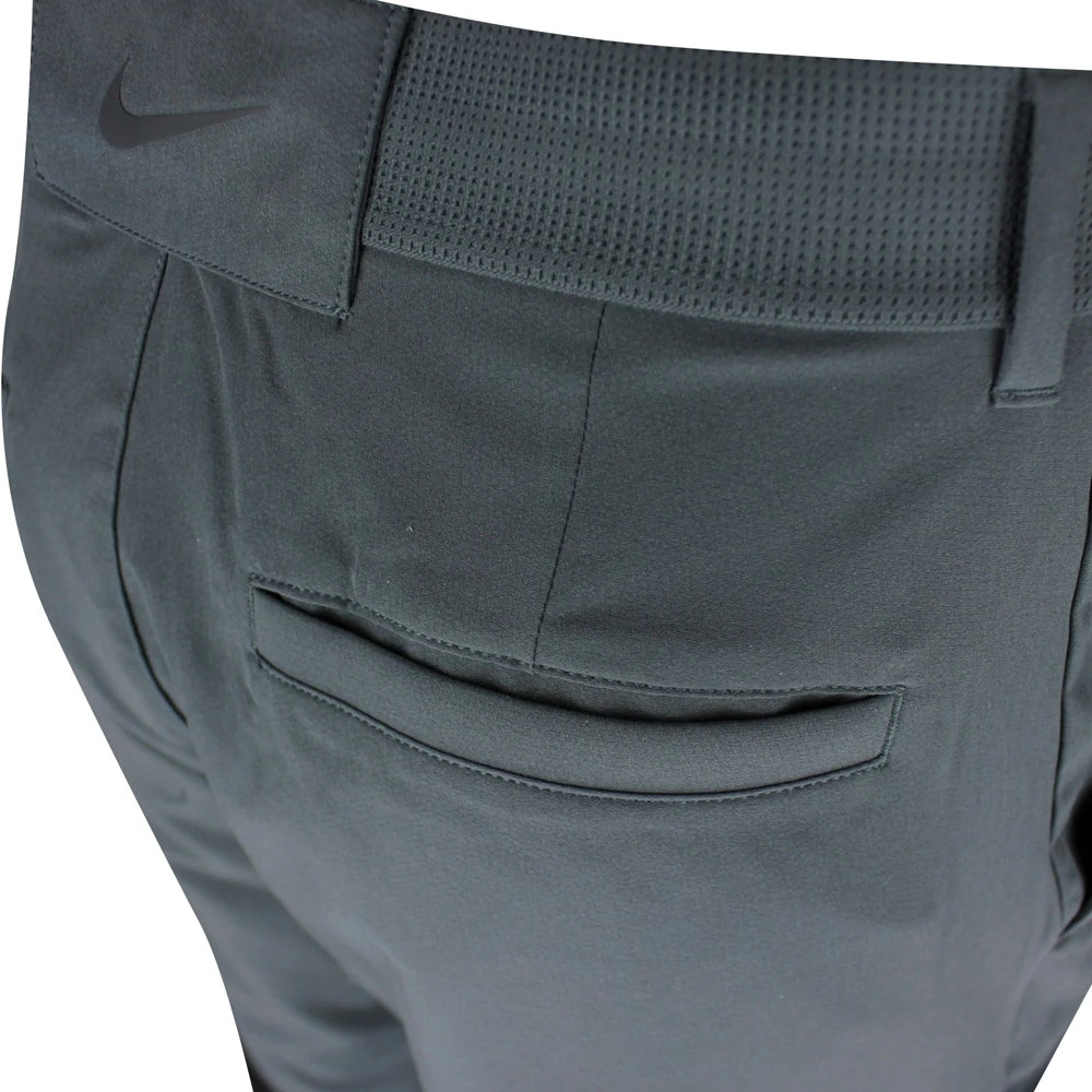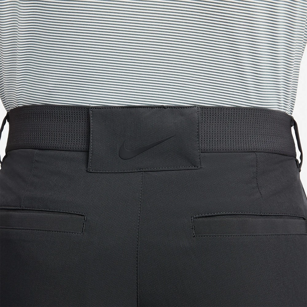 These Nike Dri-Fit Vapor golf trousers have been built to perform on the golf course and boast a stylish slim fit silhouette which is tapered in all the right areas. A lightweight, slightly textured fabric with enhanced stretch couples well with the tried and tested Dri-FIT technology to keep you cool, dry and comfortable on the inside. The slightly tacky internal shirt gripper prevents your top from riding upwards, while the added stretch through the waistband provides comfort where you need it most. A newly introduced belt slot at the rear features a prominent Nike Swoosh logo, further helping to elevate this style to new heights this season.