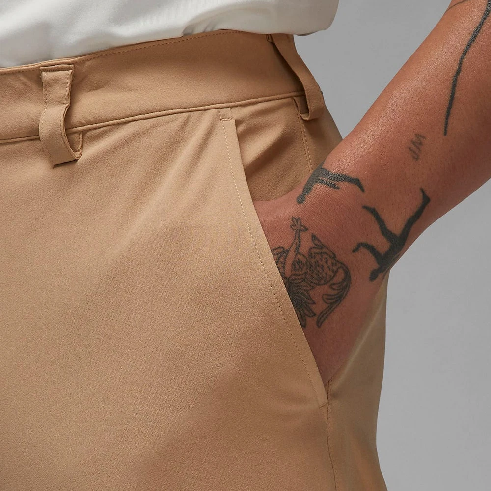 We’re excited to welcome the first ever Nike Air Jordan golf clothing & accessories collection online at Golfposer this season – the perfect way to complement your favourite Jordan sneakers on & off the course. The brand is up there with the best when it comes to golf trousers & this Jordan branded cargo pant is one of our top choices for this season. The technical fabric has a woven exterior with added stretch for lightweight, flexible comfort throughout your round – while the slim fit silhouette is tapered in all the right areas for a modern look without compromising on comfort. The stretch waistband adds even more comfort where you need it most, while the inclusion of belt loops retains a smarter look up top. The unique part of these Jordan golf trousers comes with the introduction of the two cargo pockets at either side – complete with an additional zipped pocket and a tonal Jumpman logo for a distinctive look. These Statement Cargo pocket golf trousers are a must have pick up for any Jordan Golf fan this season.