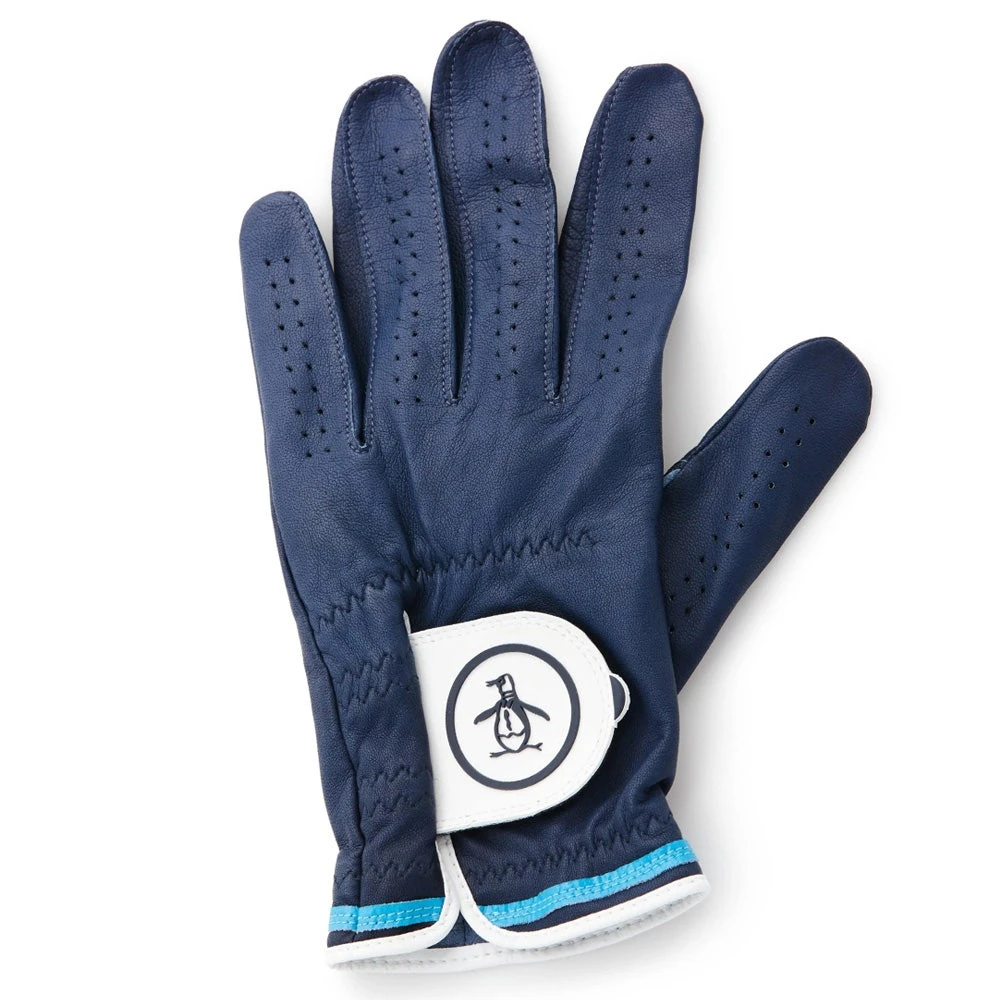 Original Penguin is one of the newest brands to arrive online at Golfposer & we’re excited to see the 2023 collection extending into a high quality range of accessories this season. This new Original Penguin golf glove has been made using Cabretta leather for a premium feel and durable performance, while the rubberised patch logo is another touch of class. The dual stripe detail is finished in a white & blue colour combination to match with the rubberised Velcro patch, while you will also find a miniature Pete logo hidden on the middle finger. A must have to complete your favourite OPG looks this season.