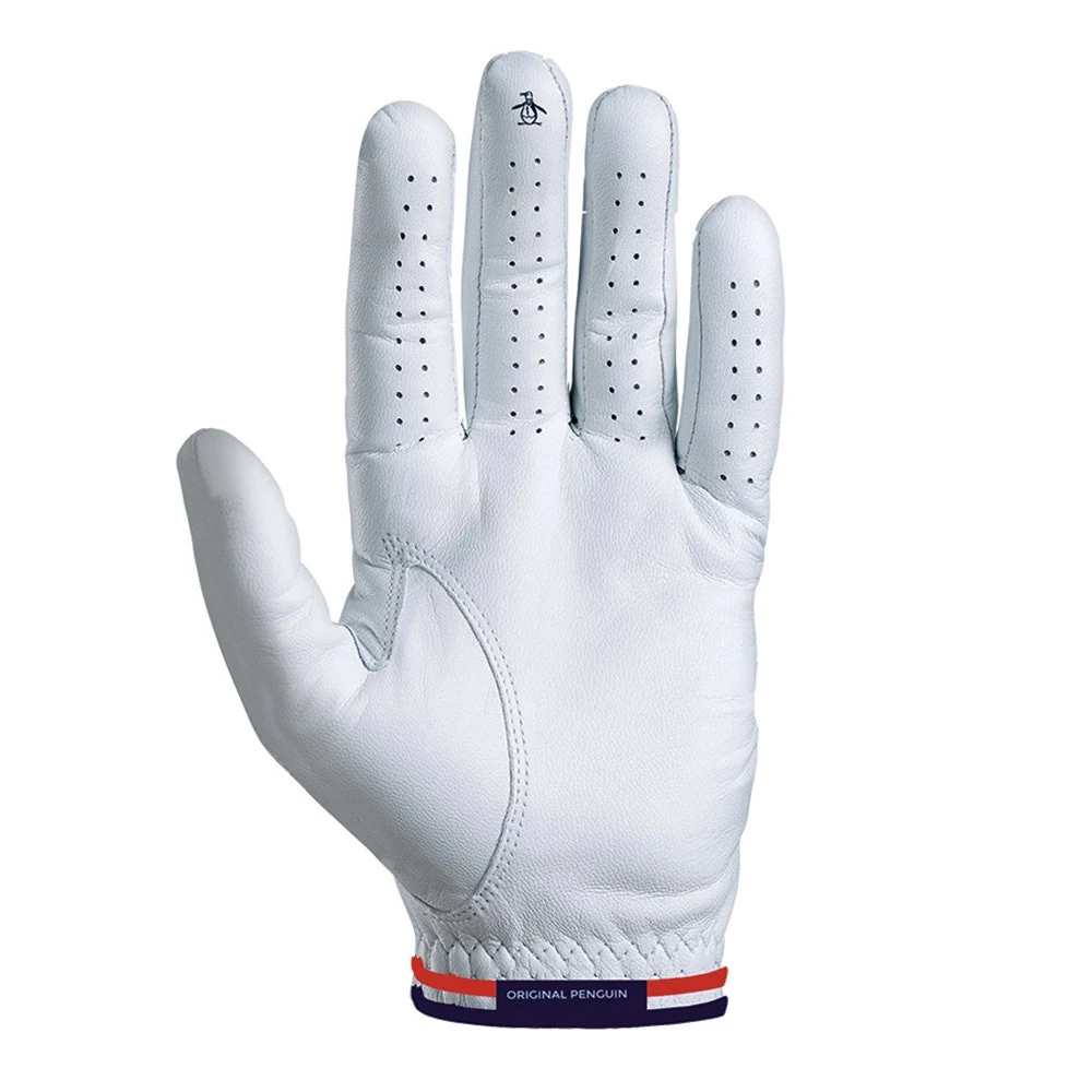 Original Penguin is the newest brand to arrive online at Golfposer & we’re excited to see the SS22 collection extending into a high quality range of accessories this season. This new Original Penguin golf glove has been made using Cabretta leather for a premium feel and durable performance, while the rubberised patch logo is another touch of class. The dual stripe detail is finished in a navy & red colour combination to match with the rubberised Velcro patch, while you will also find a miniature Pete logo hidden on the middle finger. A must have to complete your favourite OPG looks this season.