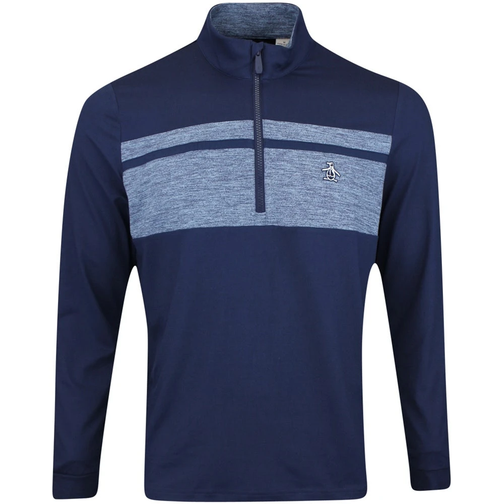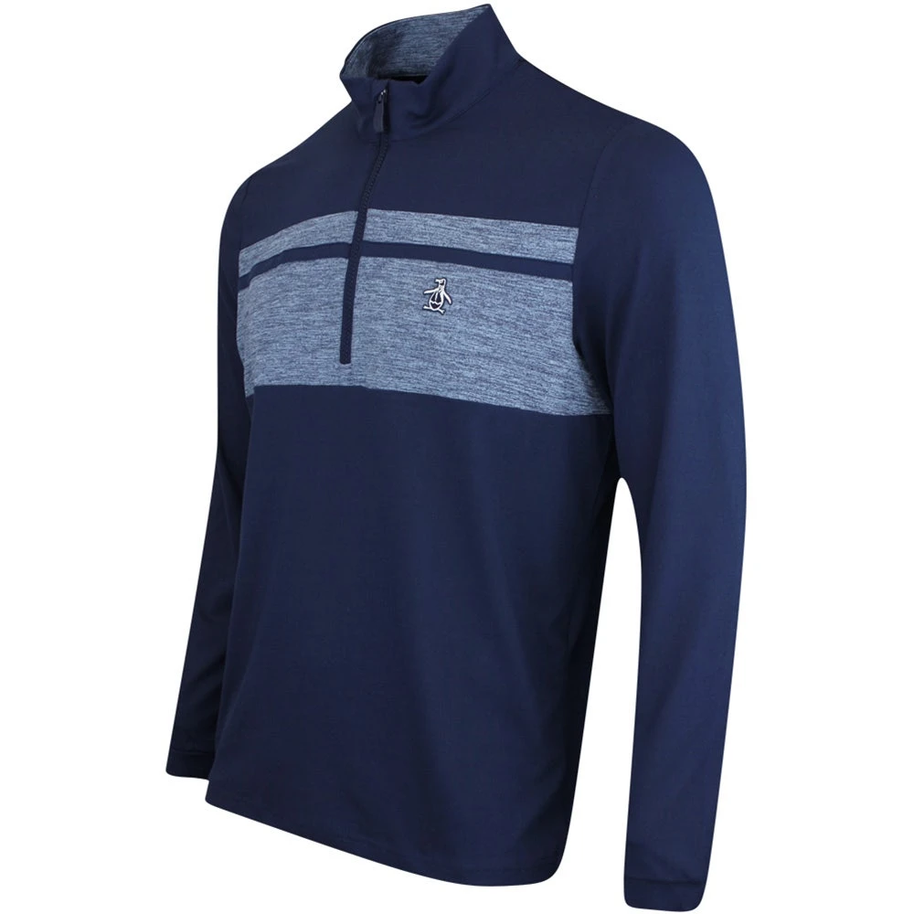 Original Penguin is one of our favourite brands to wear on and off the golf course & we love this newly introduced quarter zip mid layer style which has arrived from the AW23 collection. The flexible performance fabric will provide cosy warmth and comfort without the bulk, while the tonal block stripe at the chest will provide a timeless look this season. A great choice to add to your mid layer line up, complete with the iconic Original Penguin logo at the left chest.