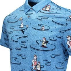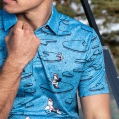 Original Penguin golf shirts are up there with the best in the game and we love this new style which has arrived from the AW23 collection. It’s a technical, performance-driven style which embraces an all over print which this time depicts the brand’s mascot on the golf course along with his winter golfing buddy, Pete the Polar Bear. The soft and flexible fabric offers supreme comfort with freedom of movement and moisture wicking performance, while the Heritage Fit silhouette and hem vents allow this style to be worn untucked with ease. The “Sticker Pete” logo is located at the left chest, while the contrast placket helps to round off another outstanding polo shirt from Original Penguin.