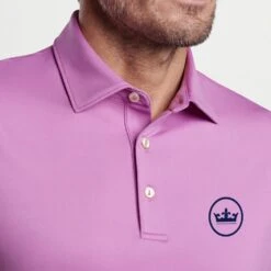 Peter Millar is one of the newest brands to arrive online at Golfposer and we love their line up of polo shirts for Autumn/Winter ’23. This particular style offers a timeless look which has been updated with the tour sized Crown logo which we have embroidered at the left chest, while this fresh colour option will look great both on and off the course this season. The soft & flexible performance fabric features a high degree of stretch for maximum freedom of movement, while the moisture wicking nature of the fibres will leave you feeling cool and dry on the inside too. Another top choice that will look great as part of any Peter Millar outfit this season.