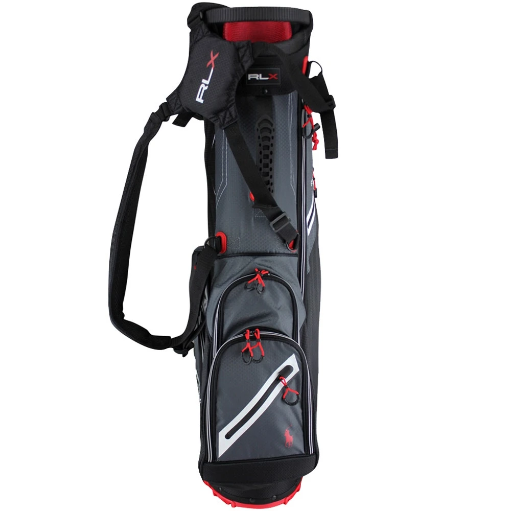 We’re excited to introduce RLX Golf bags into our offering for 2023 with this style being one of the top picks of the range. The colour combination embraces some of the iconic colours which are synonymous with Ralph Lauren, while signature RLX and Pony Player branding can be found in prominent locations throughout. A dual strap is padded for comfort while carrying, while the kickstand mechanism is both convenient and reliable. Seven multi-purpose pockets provide ample & secure storage, while this RLX golf bag also features a six way top with full length dividers. Other features include: