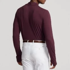 The RLX clothing line by Ralph Lauren has been extended to include this brand new Peached Airflow Mock Neck base layer shirt – one of our favourite styles from the line up. It makes use of a long sleeve Mock Neck silhouette for that classic base layer look, complete with an RLX logo on the mock neck collar & lower right sleeve. The lightweight airflow fabric offers excellent moisture wicking capabilities – while the soft jersey handle also feels great against the skin. A high degree of stretch ensures maximum freedom of movement, while the peached nature of the fabric ensures a high level of warmth retention. A must have pick up this season – especially in this timeless colour option.