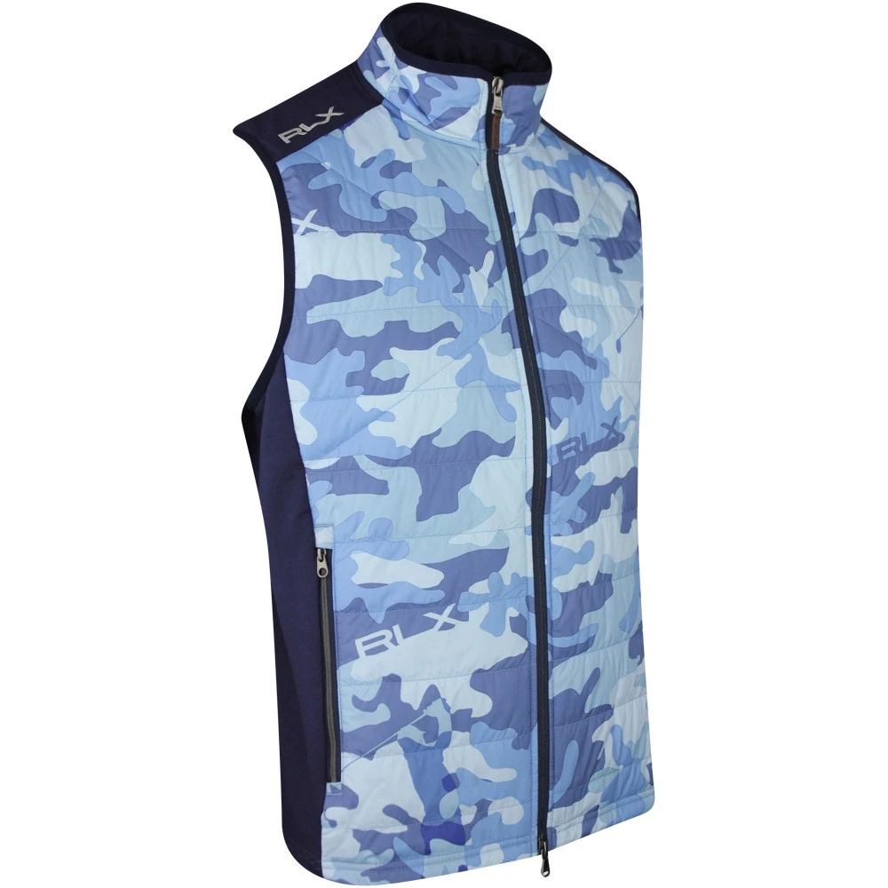 The RLX Quilted Coolwool golf gilet by Ralph Lauren is one of the best styles in the game thanks to the lightweight warmth, style appeal & versatility on offer. It makes use of a soft, non-itch merino fabrication through the rear for a quality and luxurious wear on and off the golf course, while the quilted front panel features lightweight padding for superb warmth levels where you need it most. The outer shell will repel water in a light rain shower, while the breathable nature of the fabrics used leaves you feeling dry and comfortable on the inside too. Another stunning outerwear style from RLX by Ralph Lauren which now features a camouflage printed front for even more style appeal.