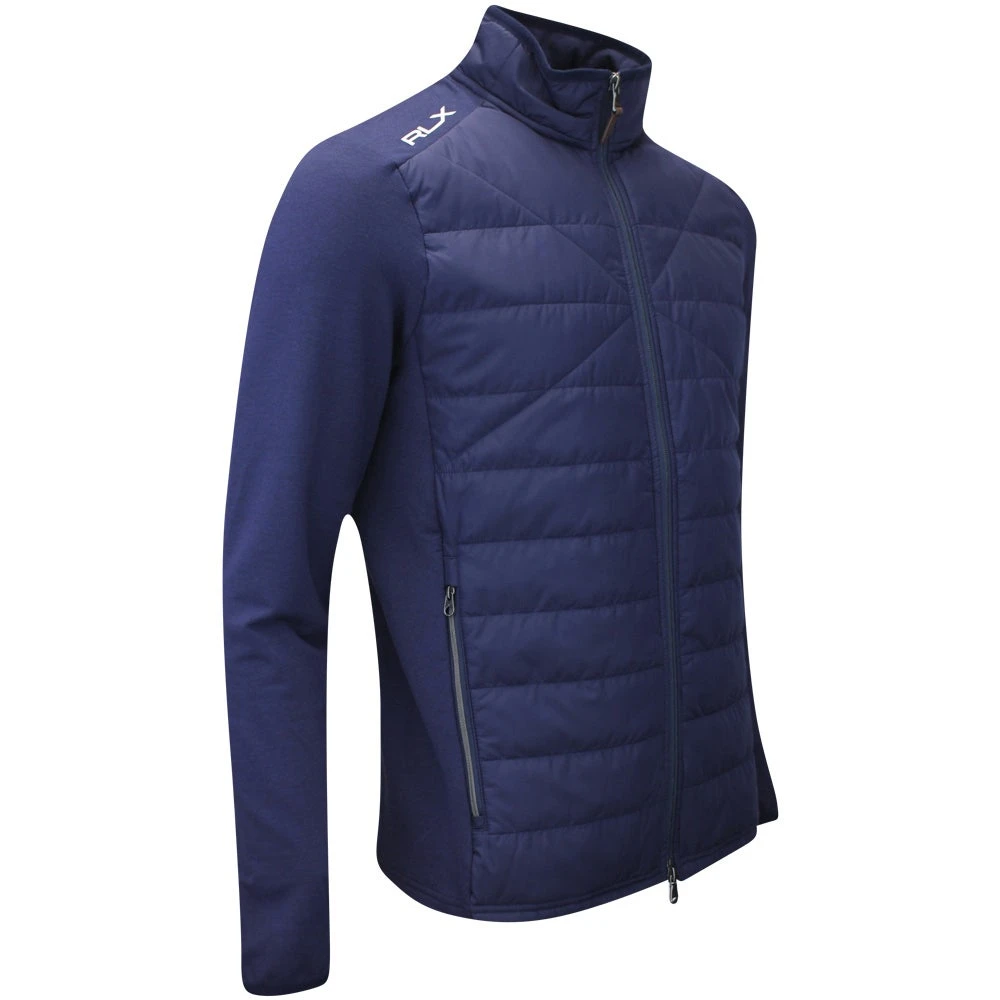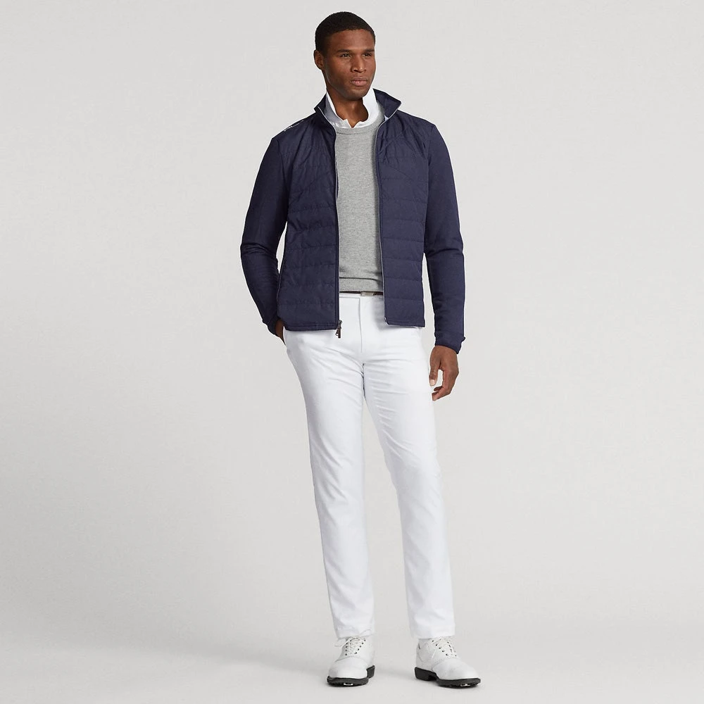 The RLX Quilted Coolwool golf jacket by Ralph Lauren is one of the best styles in the game thanks to the lightweight warmth, style appeal & versatility on offer. It makes use of a soft, non-itch merino fabrication at the sleeves and rear for a quality and luxurious wear on and off the golf course, while the quilted front panel features lightweight padding for superb warmth levels where you need it most. The outer shell will repel water in a light rain shower, while the breathable nature of the fabrics used leaves you feeling dry and comfortable on the inside too. The high degree of stretch through the soft Merino fabrication ensures minimal swing restriction, while the stand collar provides excellent coverage which is comfortable to wear while fully zipped to the top. An iconic style, perfect for on or off the course this season.