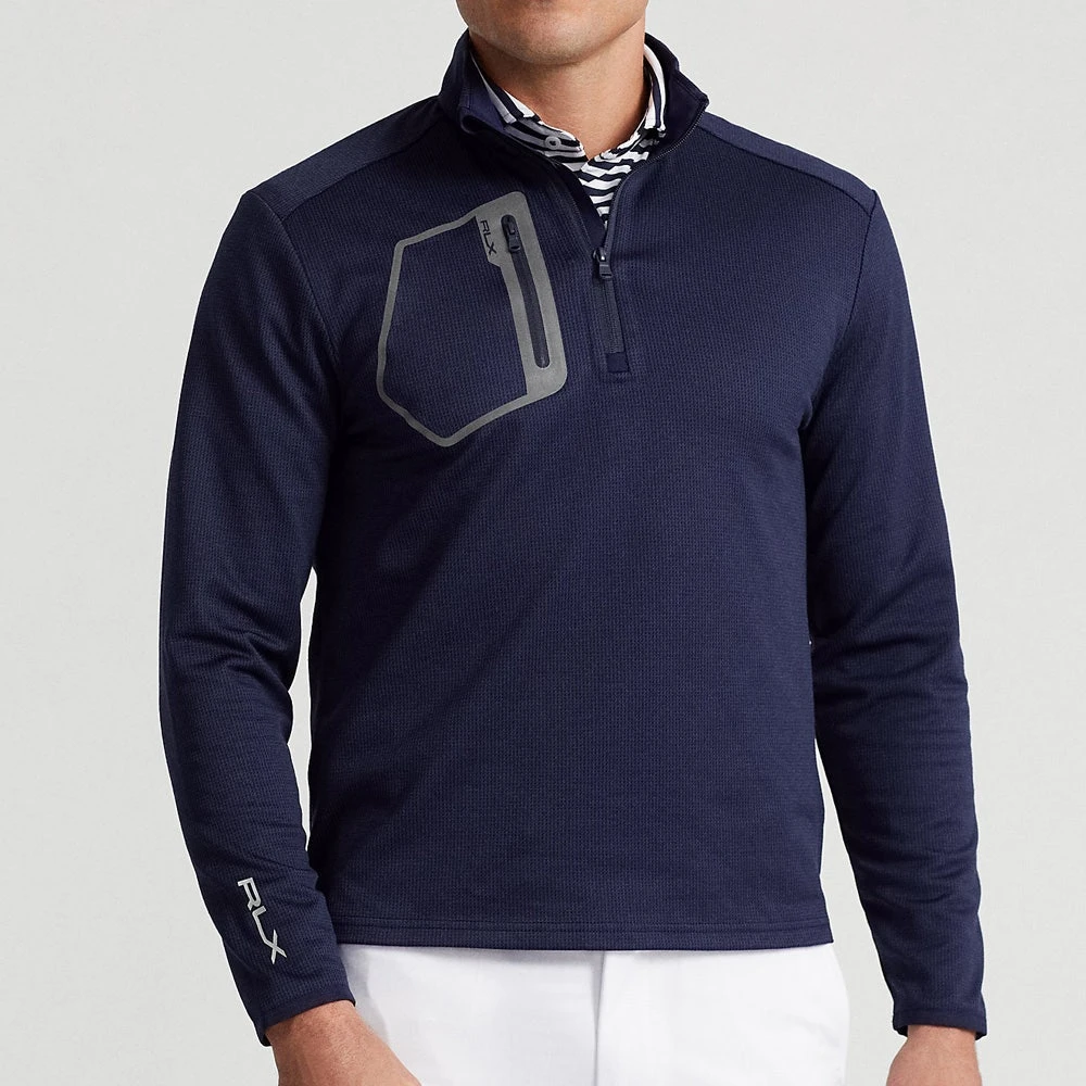 This tried & tested RLX Mid Layer offers a fresh look in this all-over “Classic Herringbone” pattern and features a bonded zip chest pocket for a sporty aesthetic. The high degree of added stretch offers superior comfort and combines well with a brushed back interior for increased warmth without the bulk, one of the key factors which makes this feel so great to wear all throughout the year. One of the most timeless and reliable styles within the RLX by Ralph Lauren collection.